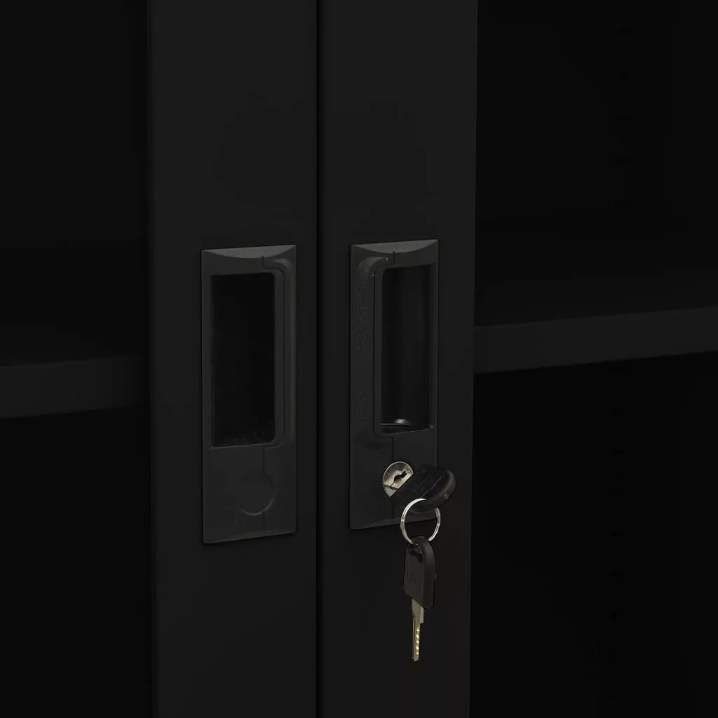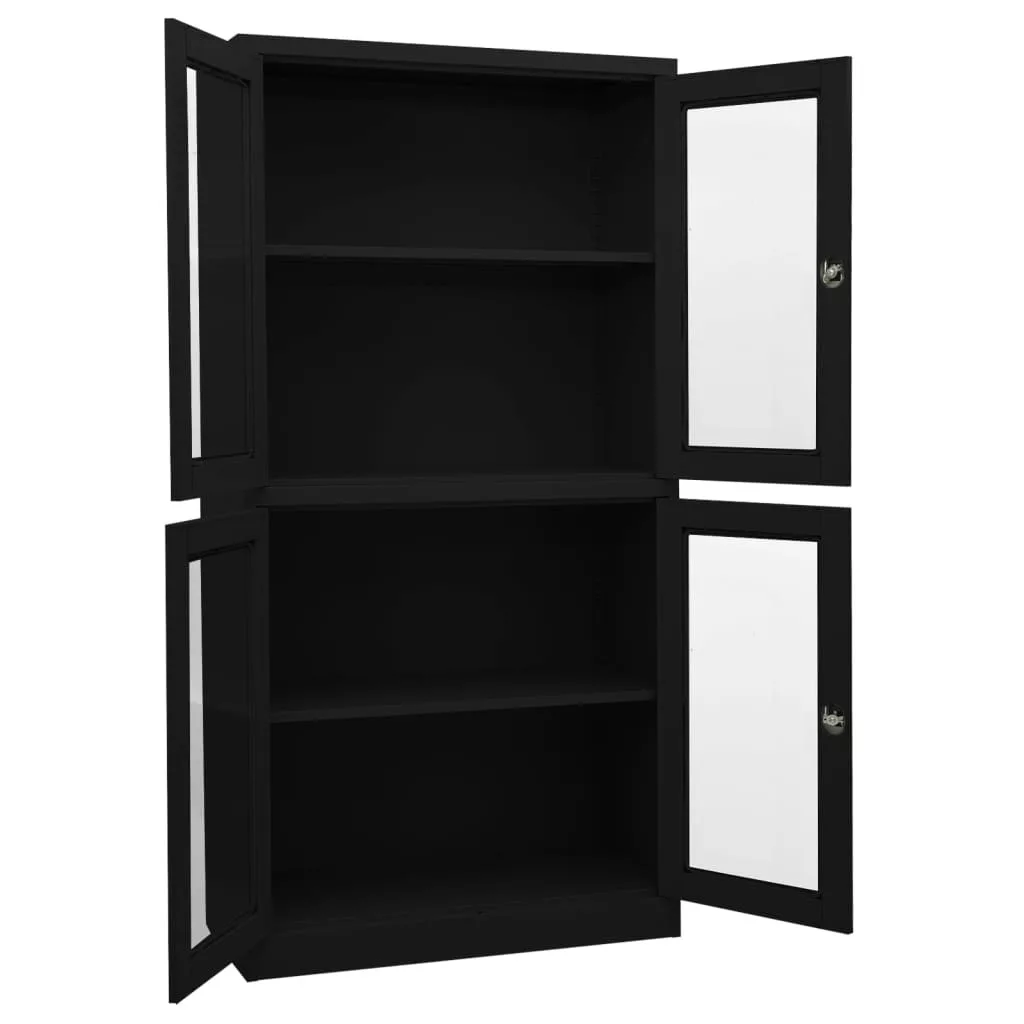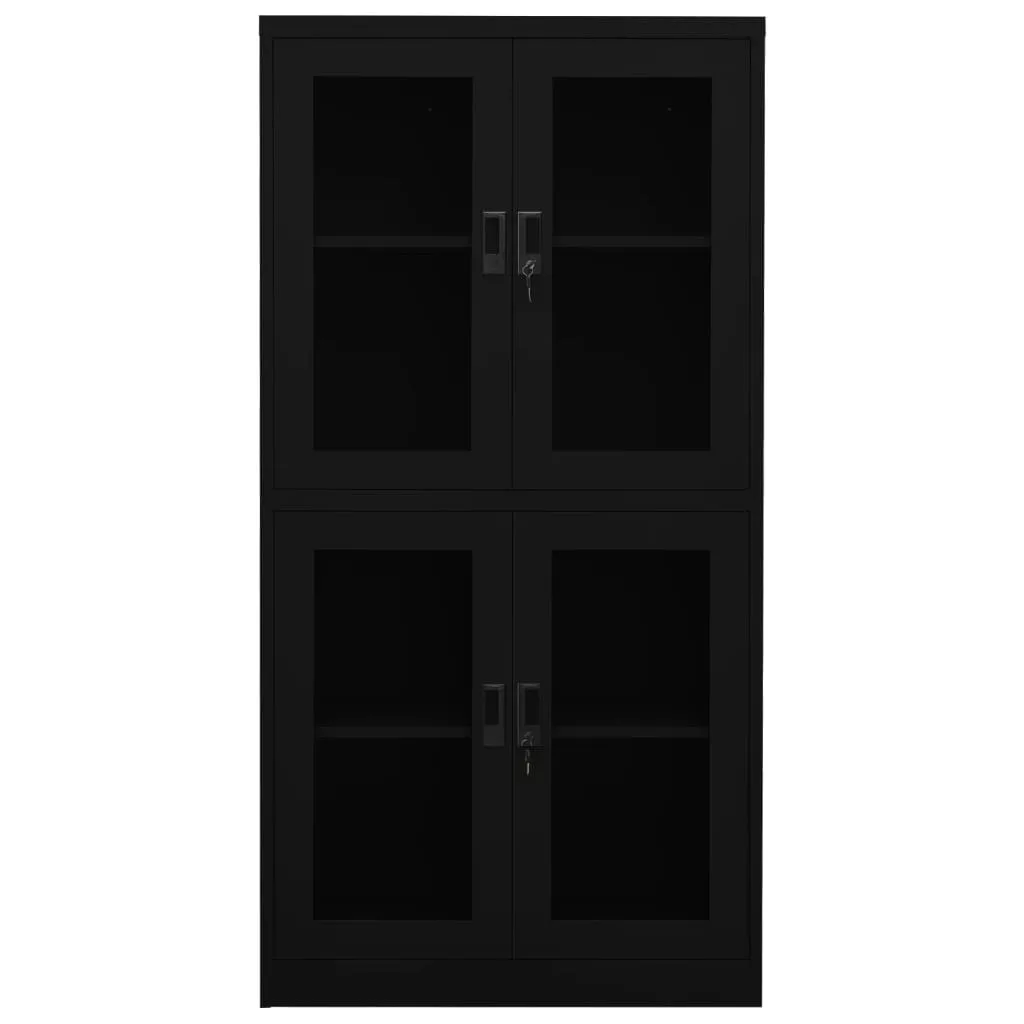 fekete acél és edzett üveg irodai szekrény 90 x 40 x 180 cm