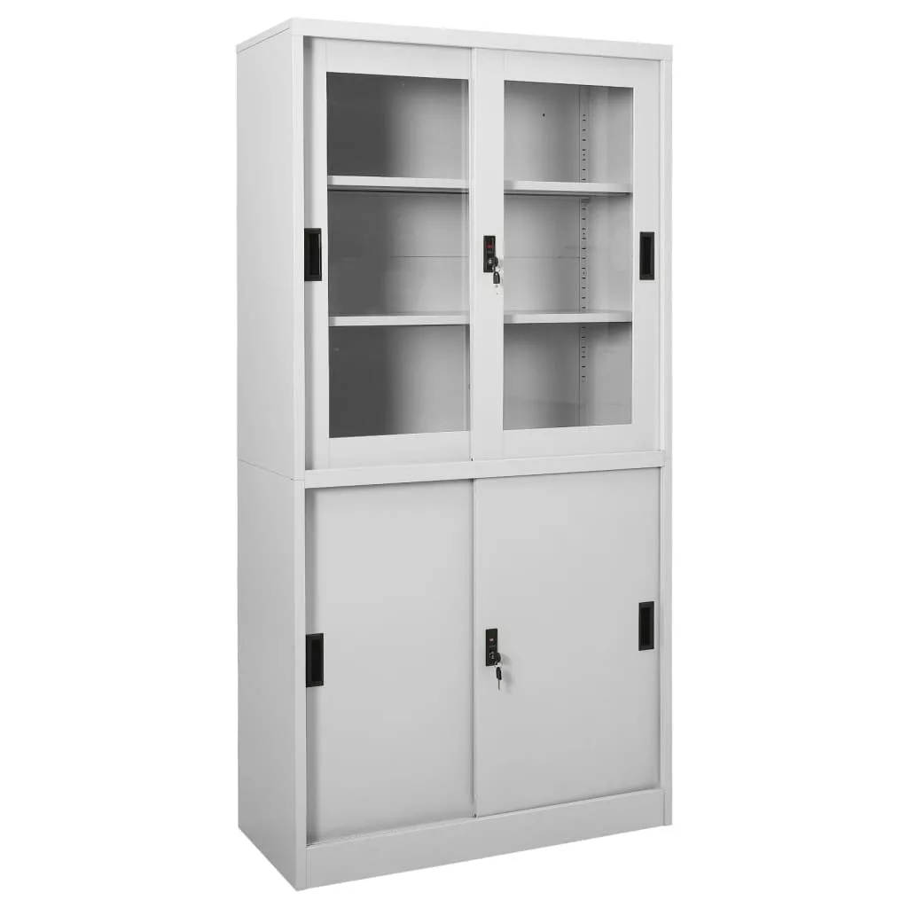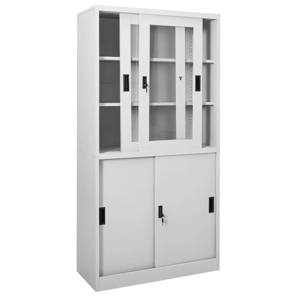 Szüntessen meg minden rendetlenséget az irodában ezzel a szekrénnyel! A tárolószekrény acélból és edzett üvegből készült, így rendkívül erős és tartós. A tolóajtó zökkenőmentes nyitást és zárást biztosít. A 3 állítható polccal rendelkező irattartó szekrény lehetővé teszi, hogy az iratokat rendezetten, különböző kategóriákba sorolja. Az irattartó szekrény zárakkal is rendelkezik, hogy megvédje személyes iratait a nem kívánt vendégektől.
