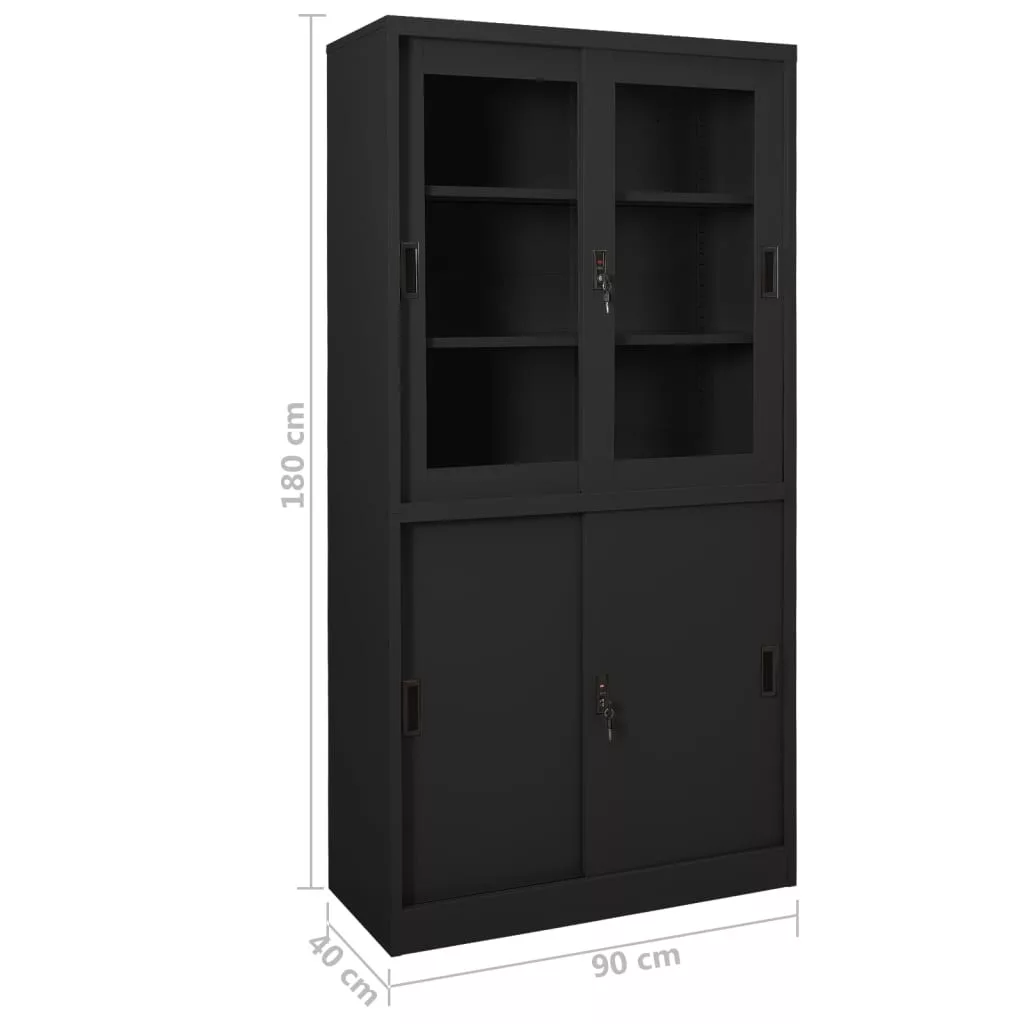 antracitszürke acél tolóajtós irodai szekrény 90 x 40 x 180 cm