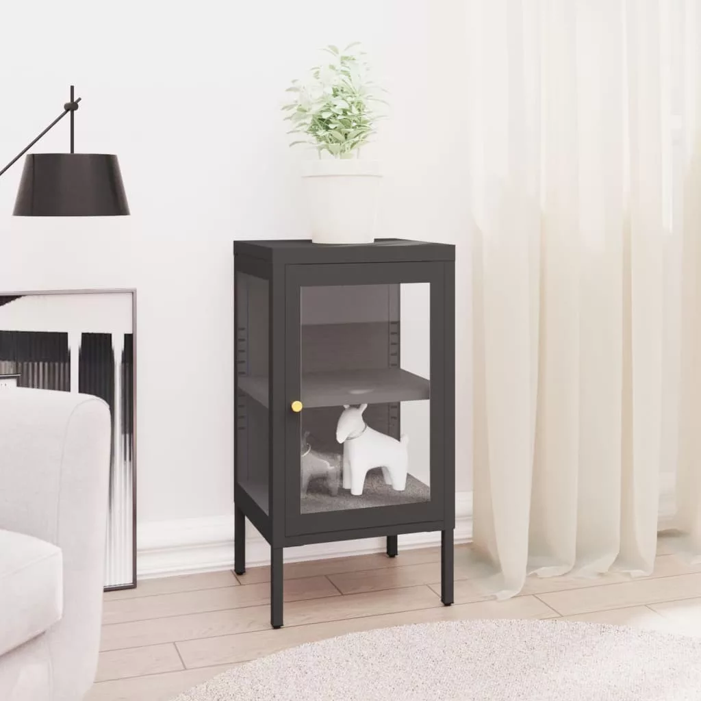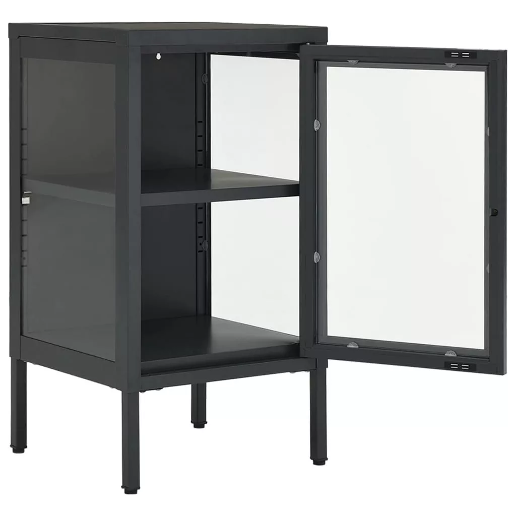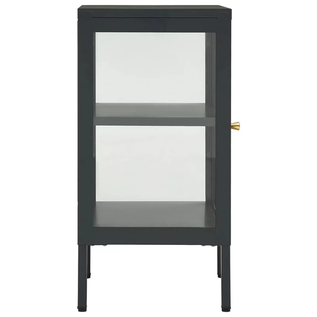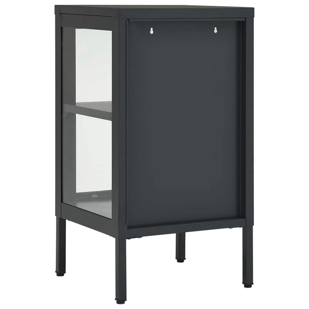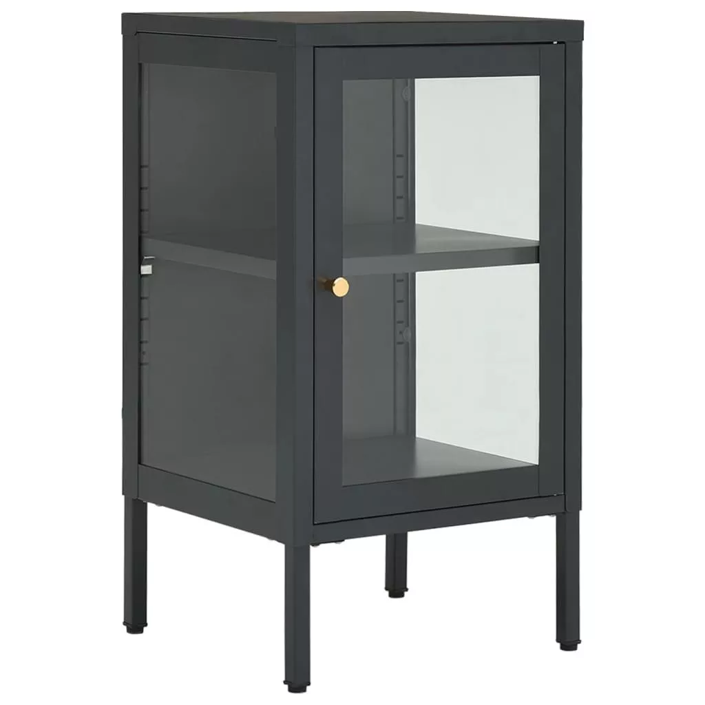 antracitszürke acél és üveg tálalószekrény 38 x 35 x 70 cm