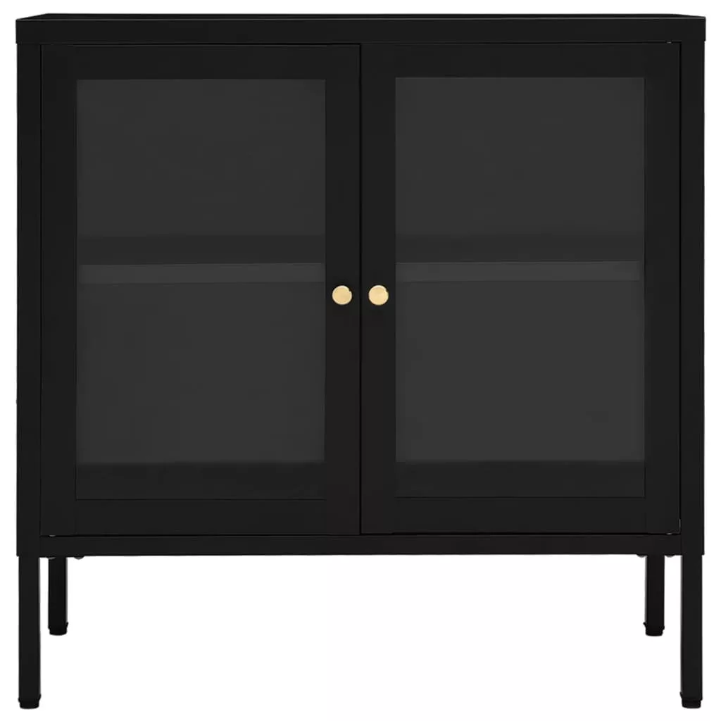 fekete acél és üveg tálalószekrény 70 x 35 x 70 cm