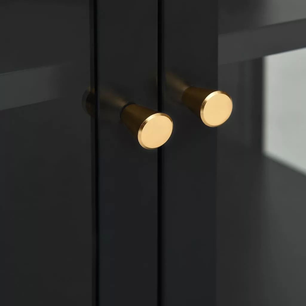 Ez a letisztult, klasszikus megjelenésű elegáns tálalószekrény otthona dekoratív és praktikus kiegészítője lesz. Az acélból készült tárolószekrény masszív és strapabíró, így évekig használható. A szekrény üvegajtaja mögötti rekeszek bőséges helyet kínálnak könyvek, folyóiratok, DVD-k, vázák és egyéb dísztárgyak kézközelben történő rendezett tárolására és megjelenítésére. Emellett a polc különböző magasságokban helyezhető el a tárolóhely méretének megváltoztatásához. A lábak könnyen beállíthatóak a kívánt magasságba, és biztosítják a kisszekrény stabilitását. A szekrény nedves ruhával könnyen tisztítható.
