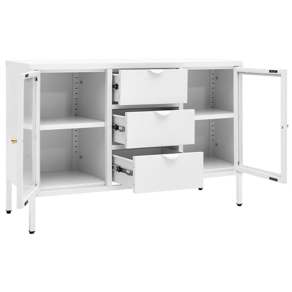 fehér acél és edzett üveg tálalószekrény 105 x 35 x 70 cm