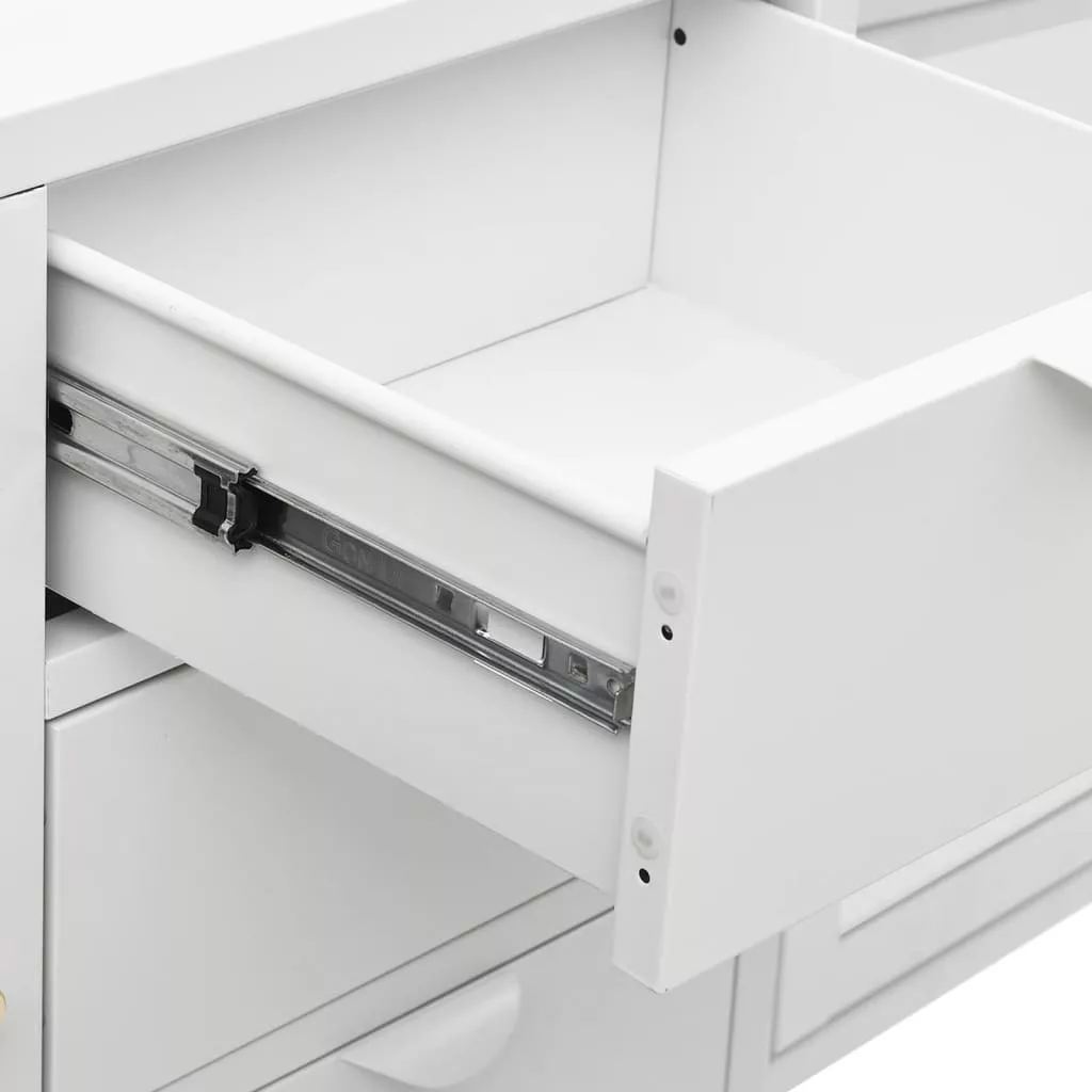 Ez a letisztult, klasszikus megjelenésű elegáns tálalószekrény otthona dekoratív és praktikus kiegészítője lesz. Ez az acélból és edzett üvegből készült tárolószekrény erős, tartós, és évekig tartó használatot biztosít. A szekrény 2 állítható polccal és 3 fiókkal rendelkezik, amelyek bőséges tárolóhelyet biztosítanak DVD-k, multimédiás készülékek, könyvek és kisebb alapvető tárgyak rendezett és elérhető helyen tartásához. A fiókok 3 részes golyóscsapágyas sínekkel gondoskodnak a zökkenőmentes nyitásról és zárásról. Emellett a szekrény nedves ruhával könnyen tisztítható.