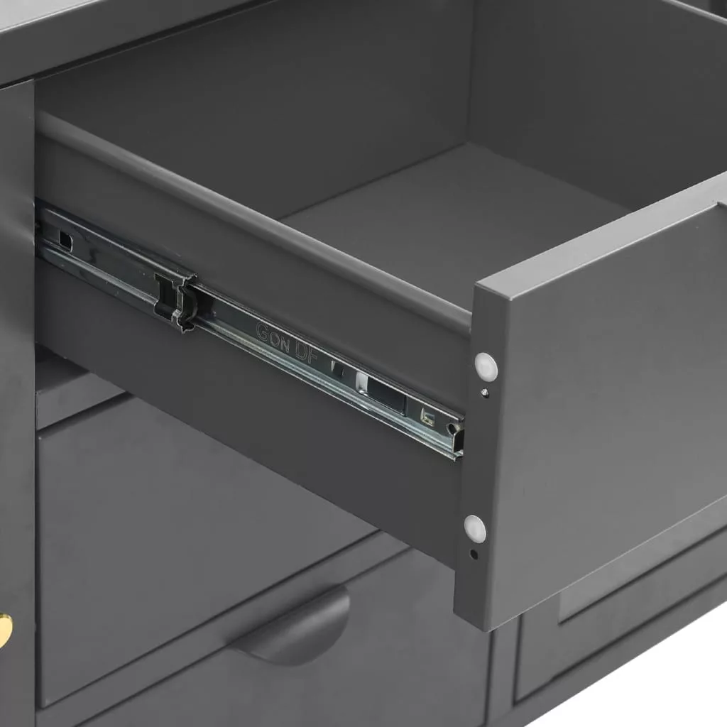 Ez a letisztult, klasszikus megjelenésű elegáns tálalószekrény otthona dekoratív és praktikus kiegészítője lesz. Ez az acélból és edzett üvegből készült tárolószekrény erős, tartós, és évekig tartó használatot biztosít. A szekrény 2 állítható polccal és 3 fiókkal rendelkezik, amelyek bőséges tárolóhelyet biztosítanak DVD-k, multimédiás készülékek, könyvek és kisebb alapvető tárgyak rendezett és elérhető helyen tartásához. A fiókok 3 részes golyóscsapágyas sínekkel gondoskodnak a zökkenőmentes nyitásról és zárásról. Emellett a szekrény nedves ruhával könnyen tisztítható.