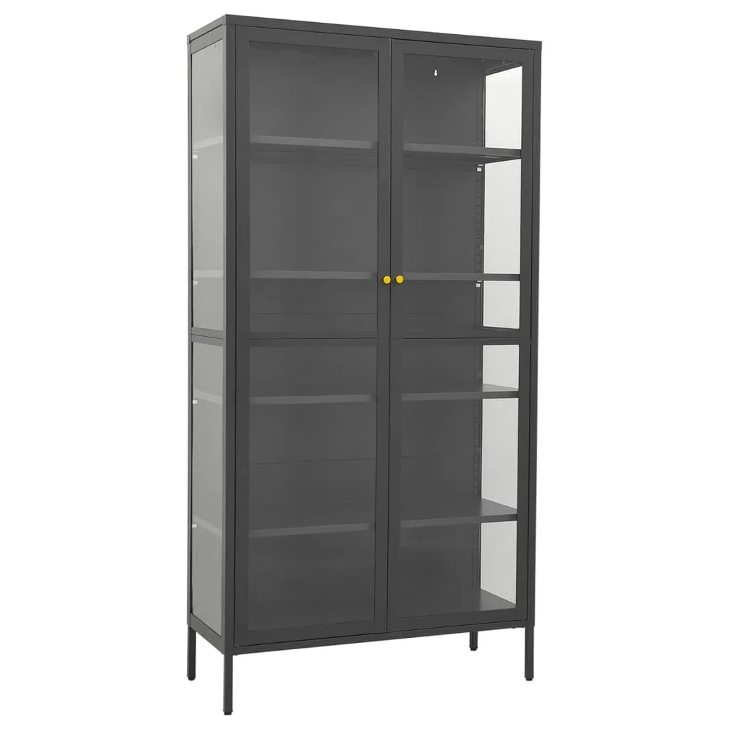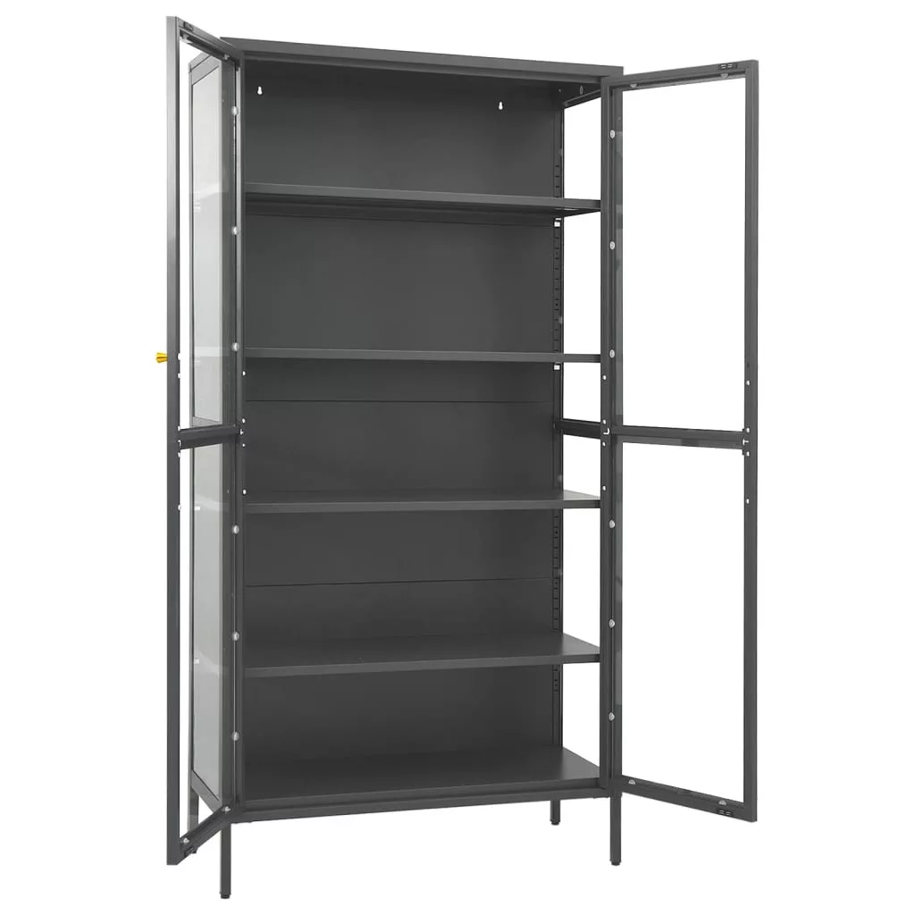 antracitszürke acél és edzett üveg vitrin 90 x 40 x 180 cm