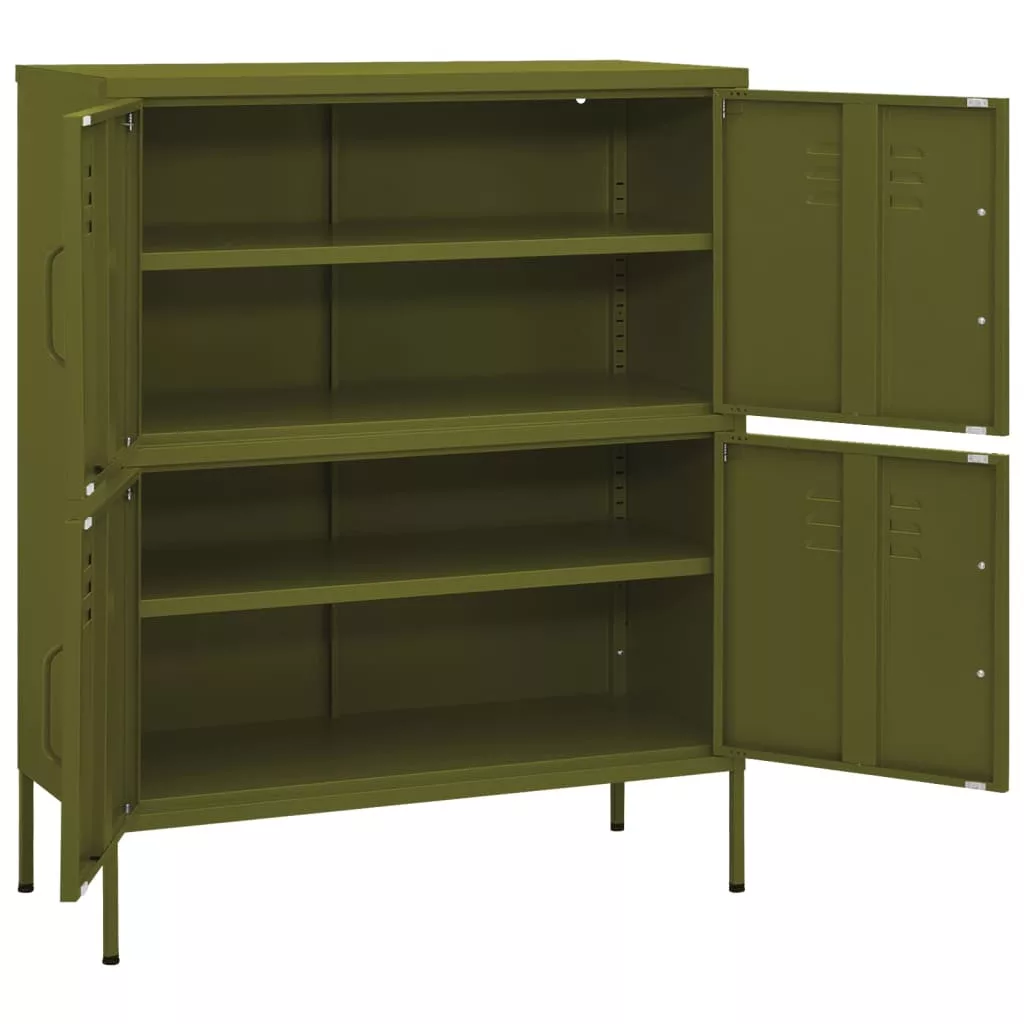 olívazöld acél tárolószekrény 80 x 35 x 101,5 cm