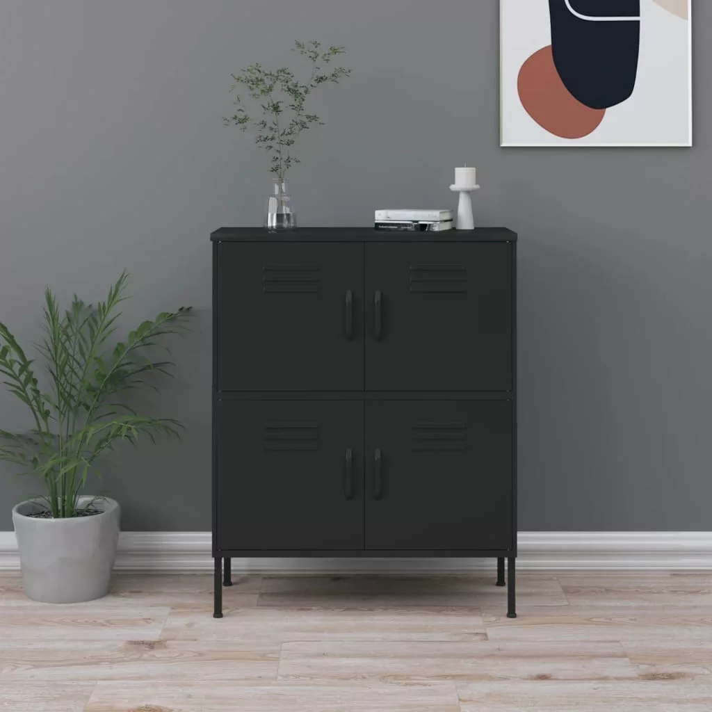 fekete acél tárolószekrény 80 x 35 x 101,5 cm