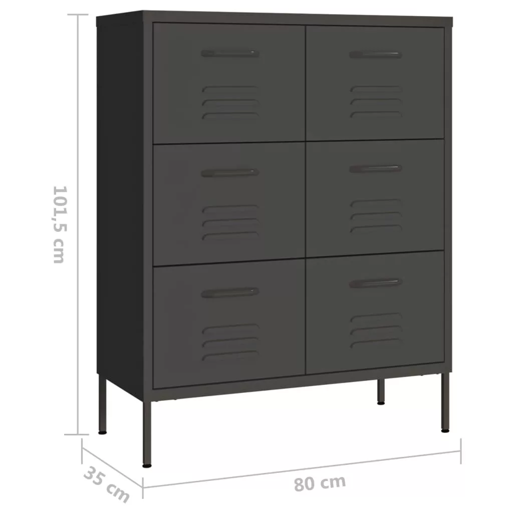 antracitszürke acél fiókos szekrény 80 x 35 x 101,5 cm
