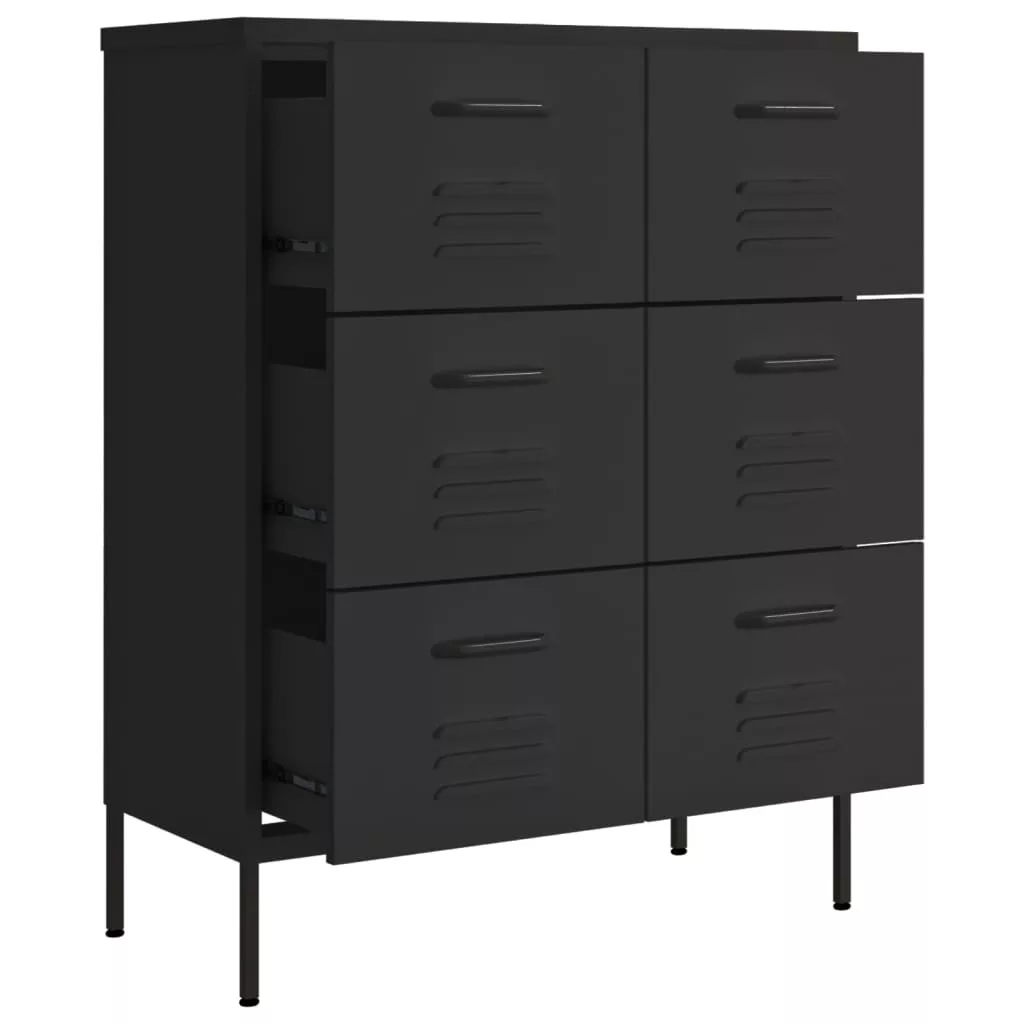 fekete acél fiókos szekrény 80 x 35 x 101,5 cm