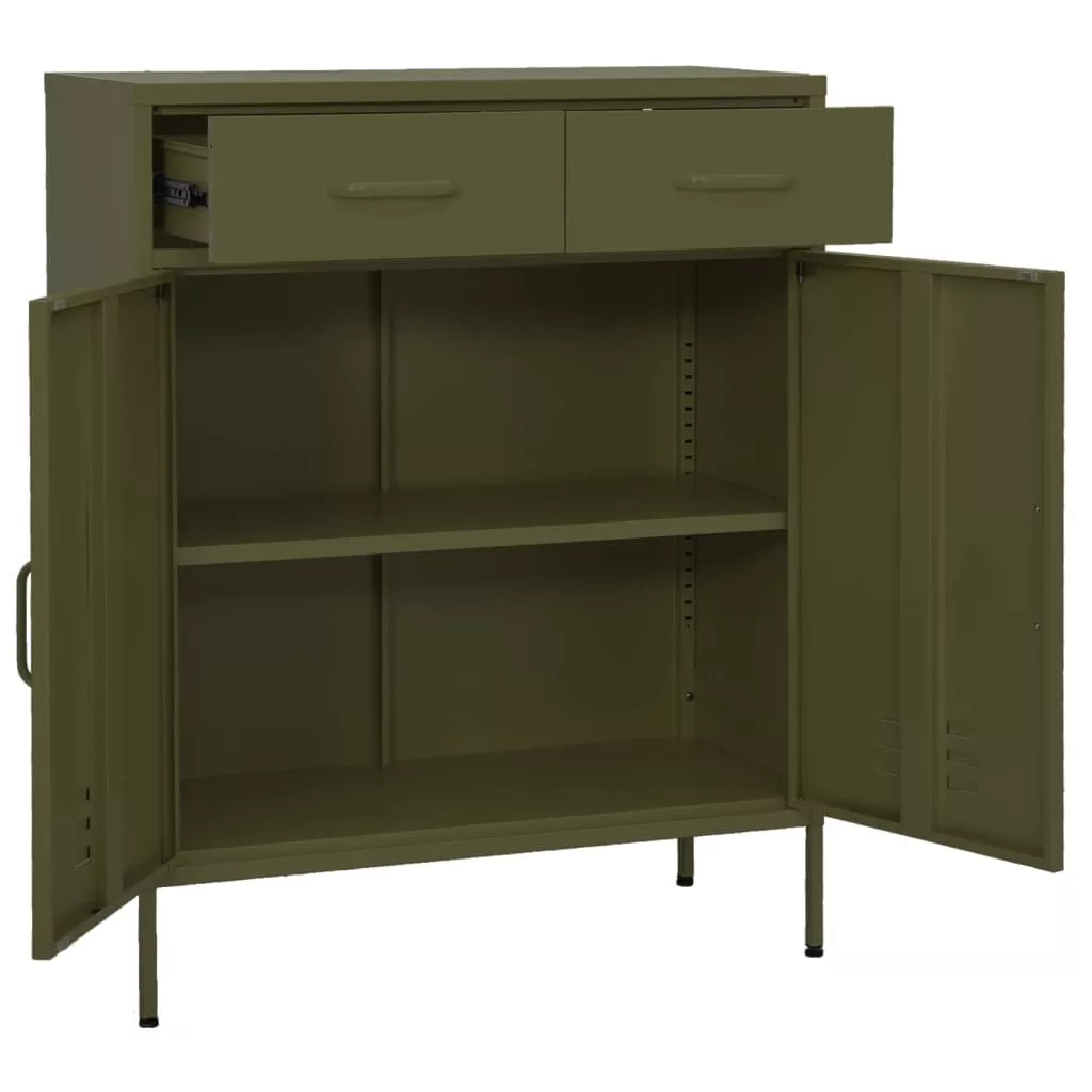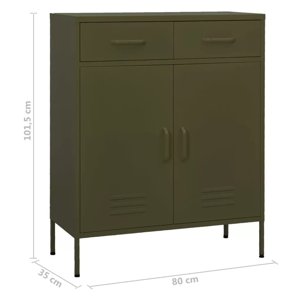 olívazöld acél tárolószekrény 80 x 35 x 101,5 cm