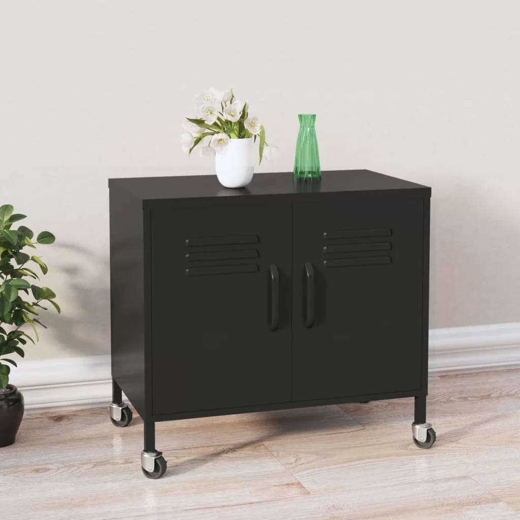 fekete acél tárolószekrény 60 x 35 x 56 cm