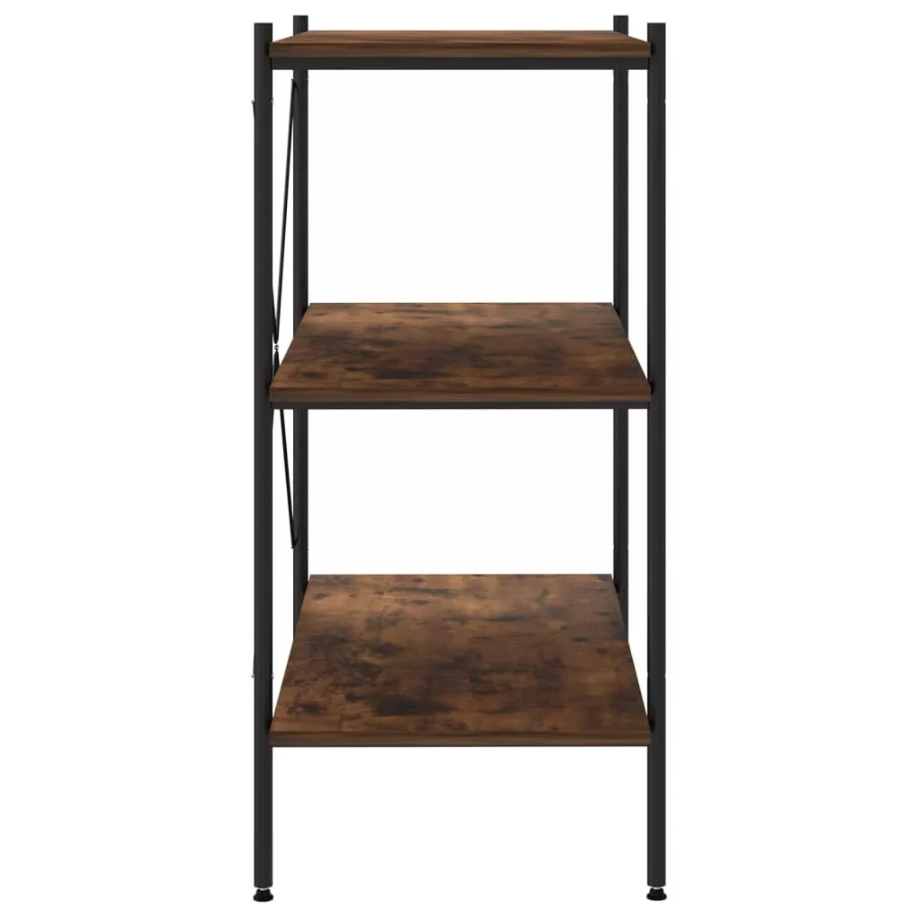 fekete és sötét faszínű 3 szintes polcrendszer 80x40x92 cm