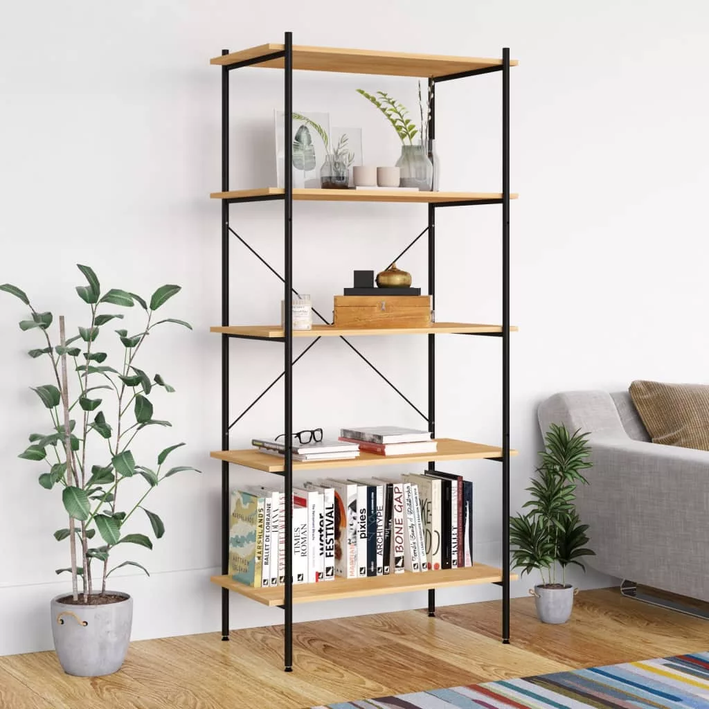 5 szintes polcrendszer fekete és tölgy 80x40x163 cm