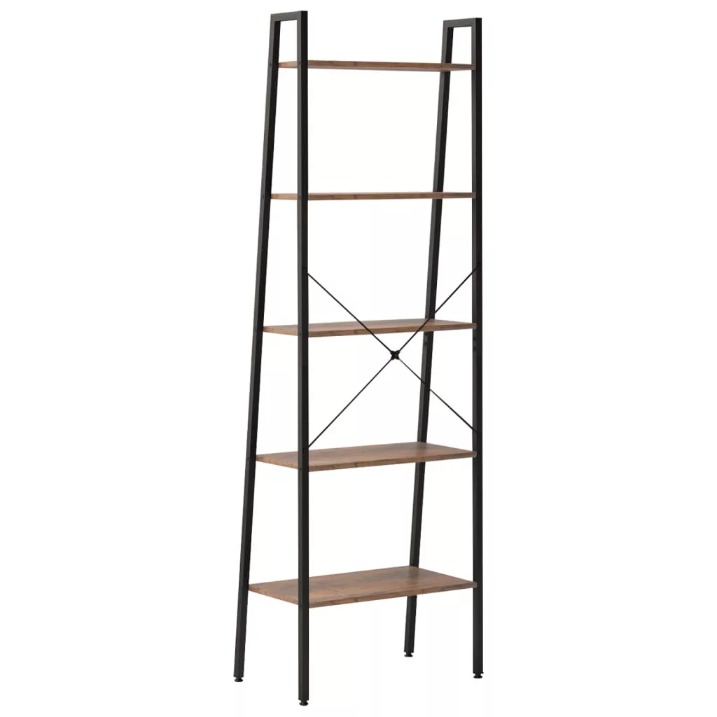 5 szintes sötétbarna és fekete állópolc 56 x 35 x 174 cm