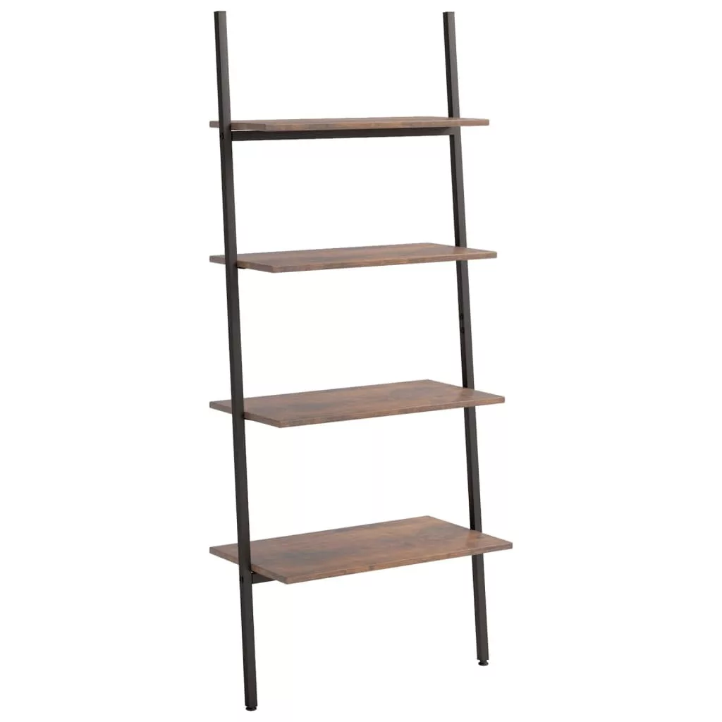 4 szintes sötétbarna és fekete létrapolc 64 x 34 x 150,5 cm