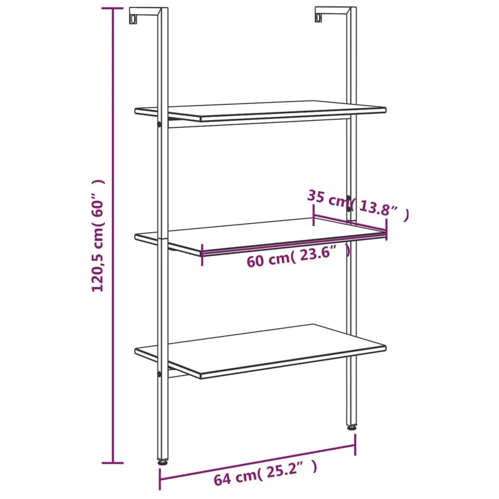 3 szintes fekete létrapolc 64 x 35 x 120,5 cm