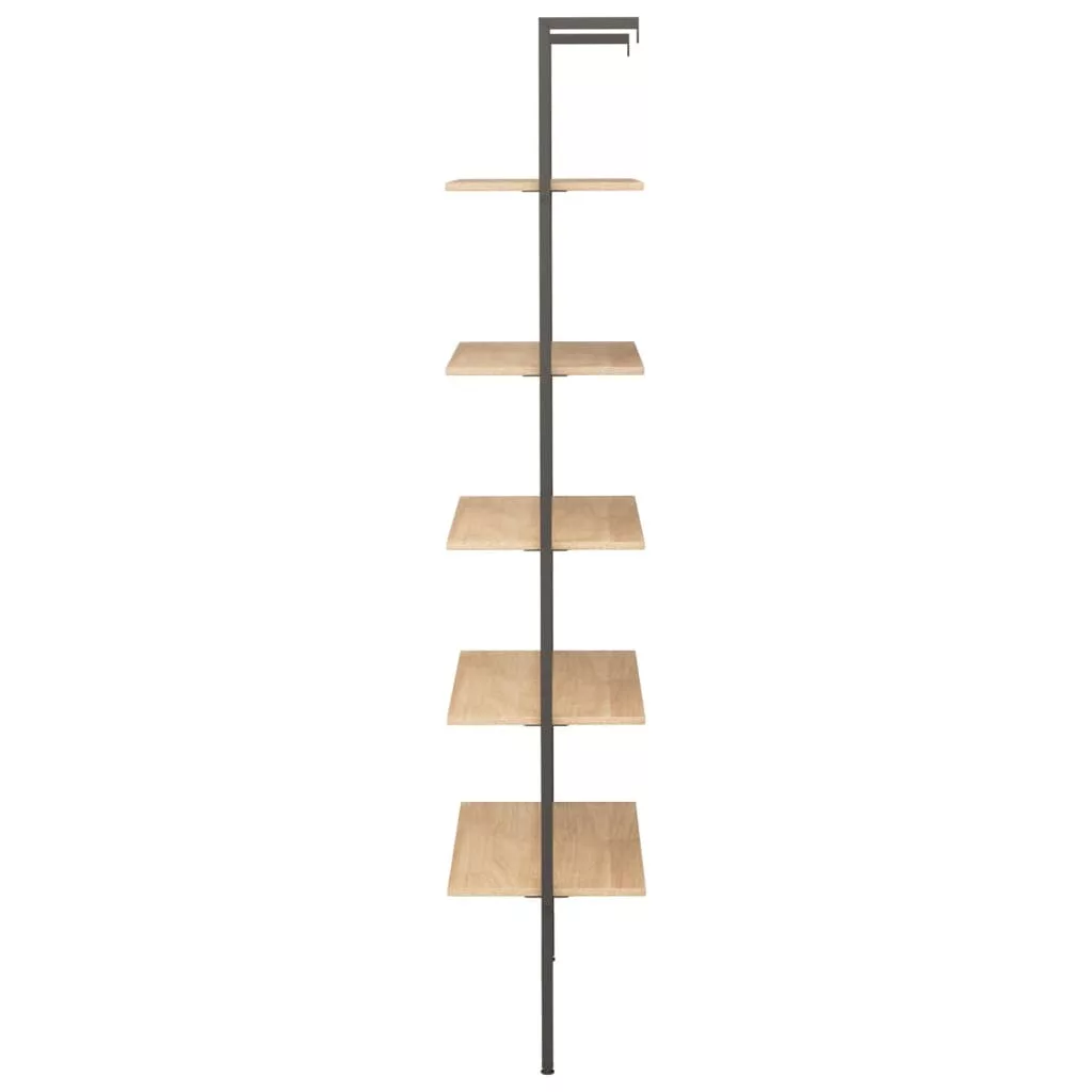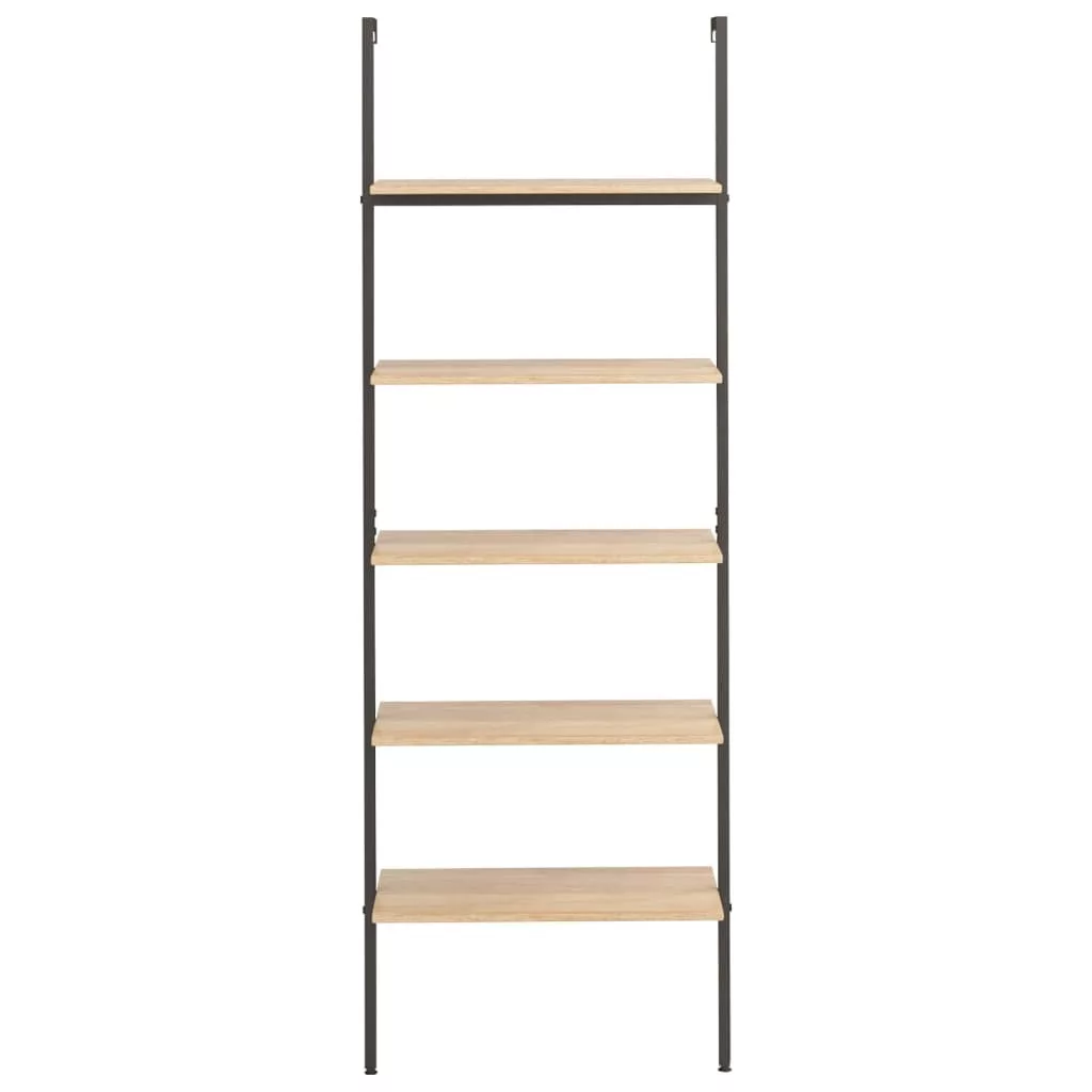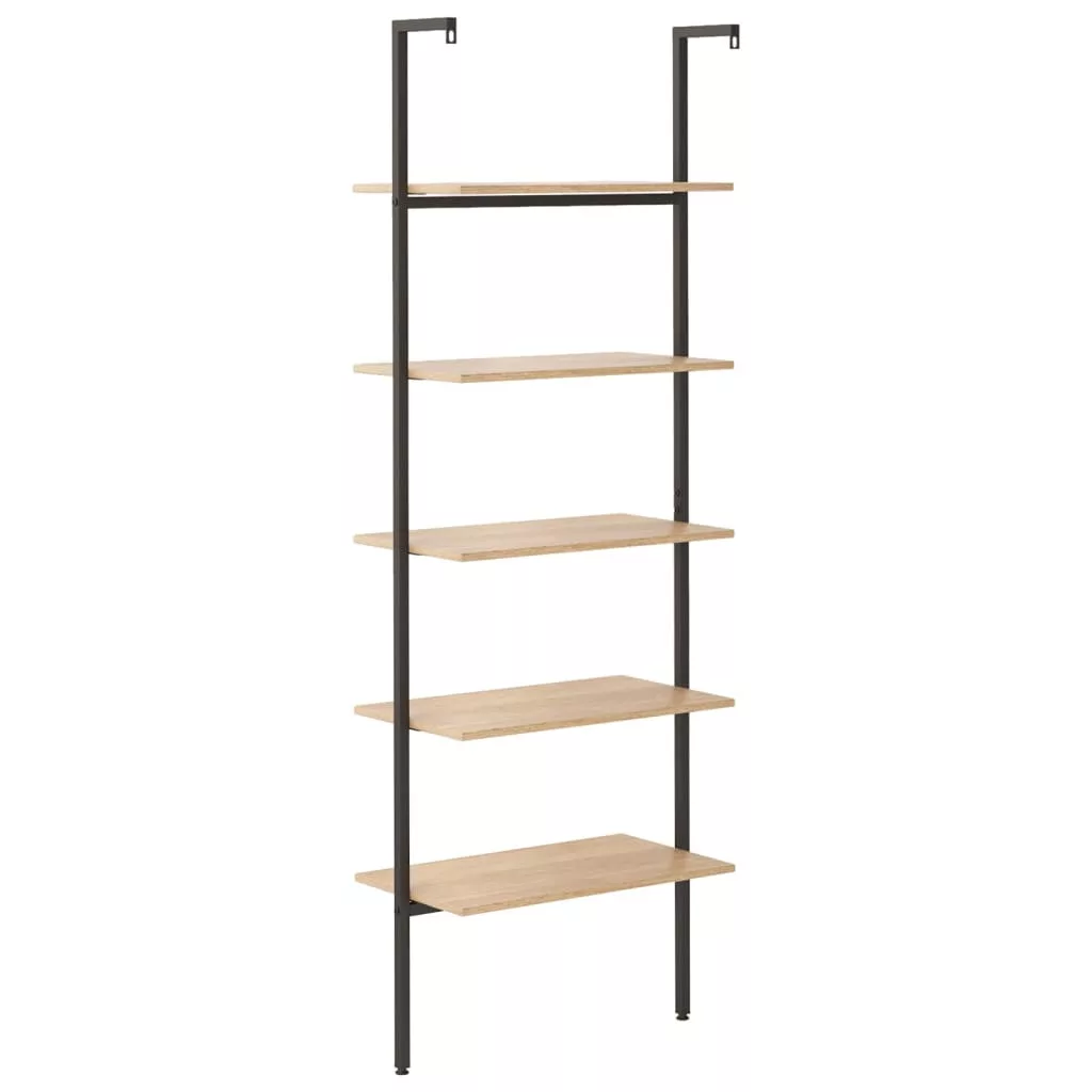 5 szintes világosbarna és fekete létrapolc 64 x 35 x 185 cm