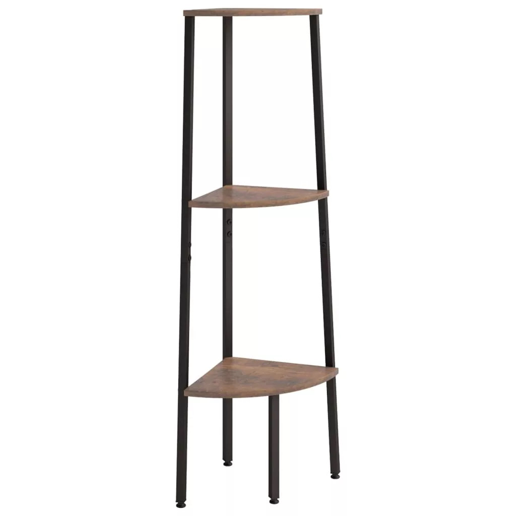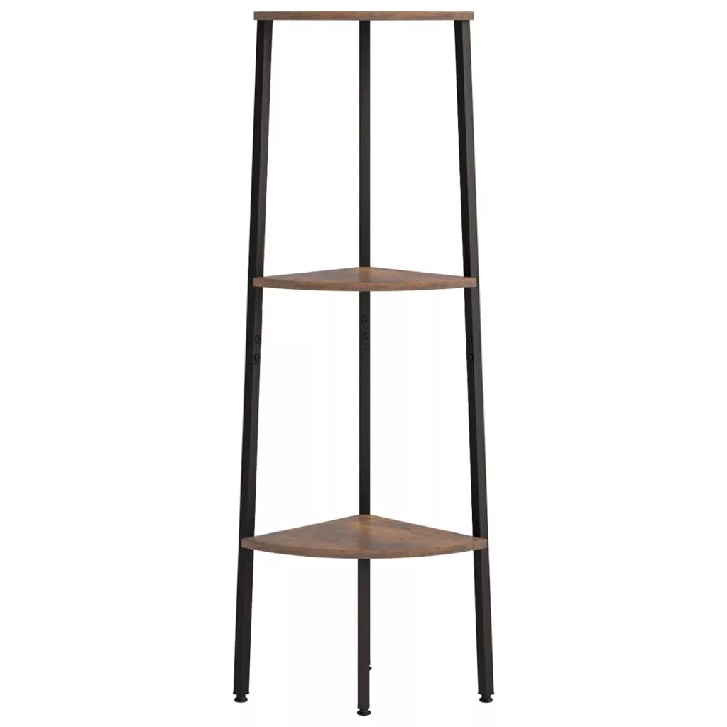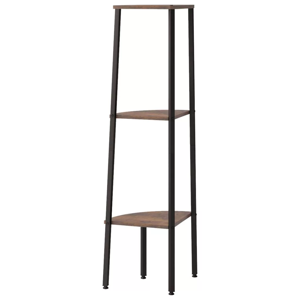 3 szintes sötétbarna és fekete sarokpolc 45,5 x 31,5 x 120 cm