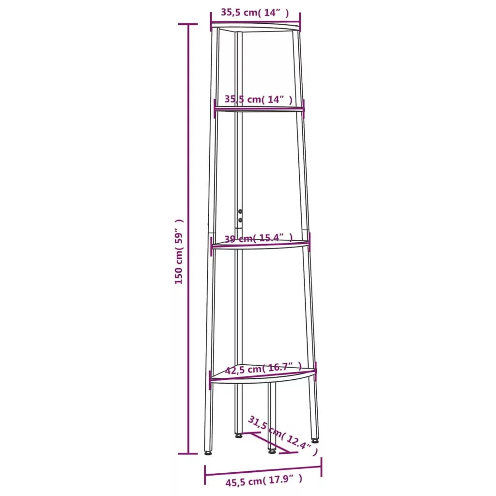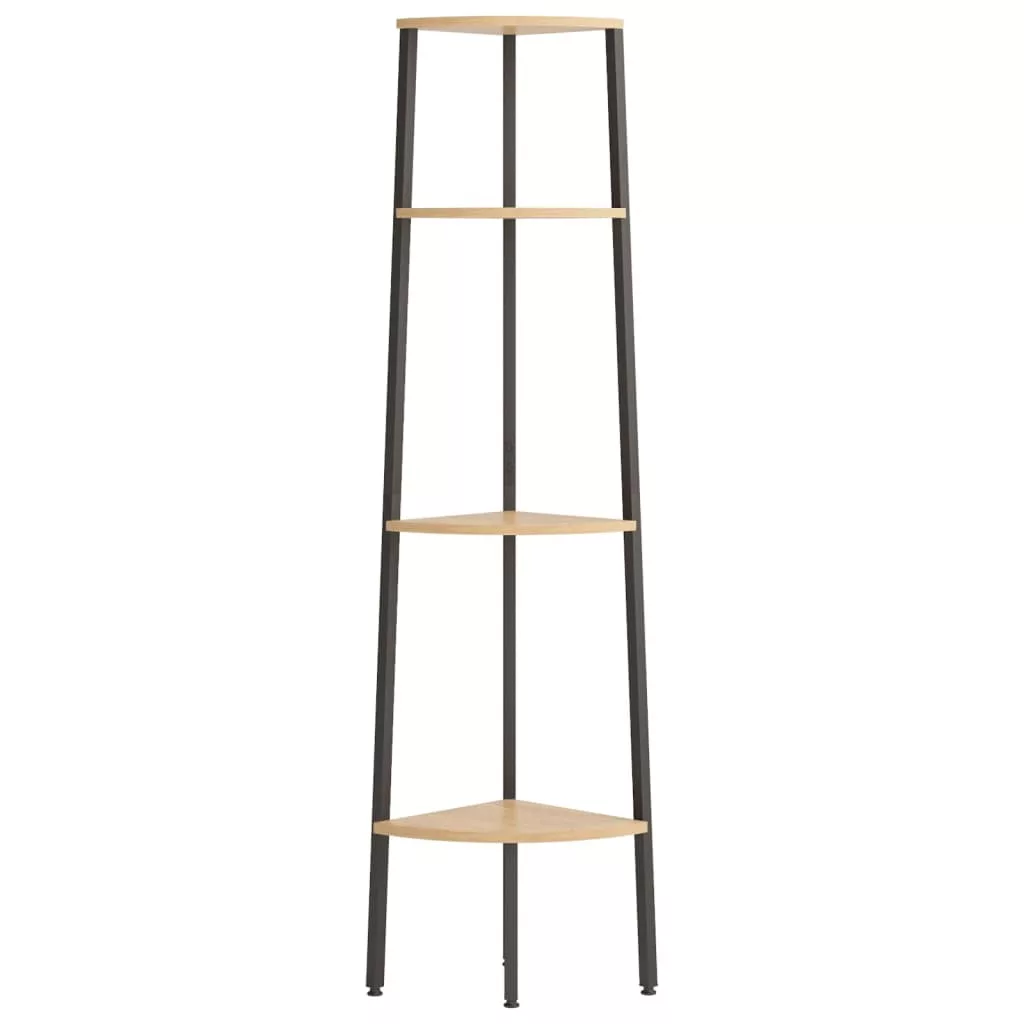 4 szintes világosbarna és fekete sarokpolc 45,5 x 31,5 x 150 cm