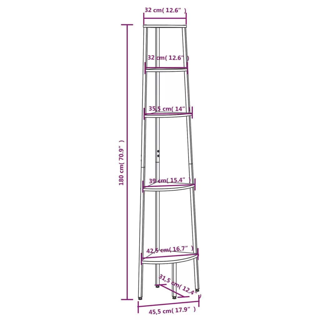 5 szintes sötétbarna és fekete sarokpolc 45,5 x 31,5 x 180 cm