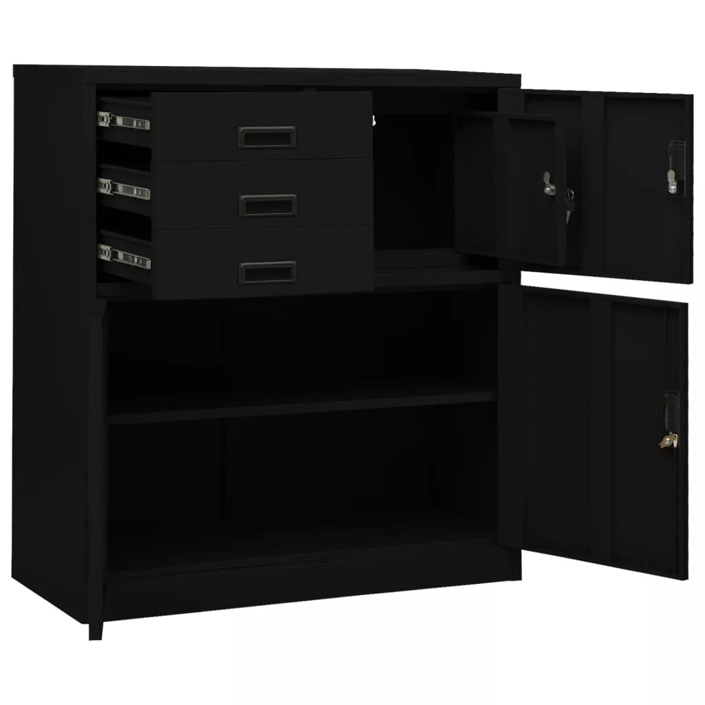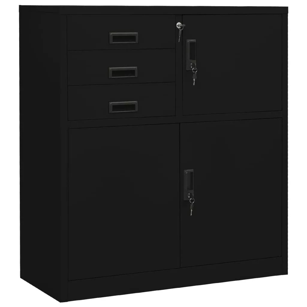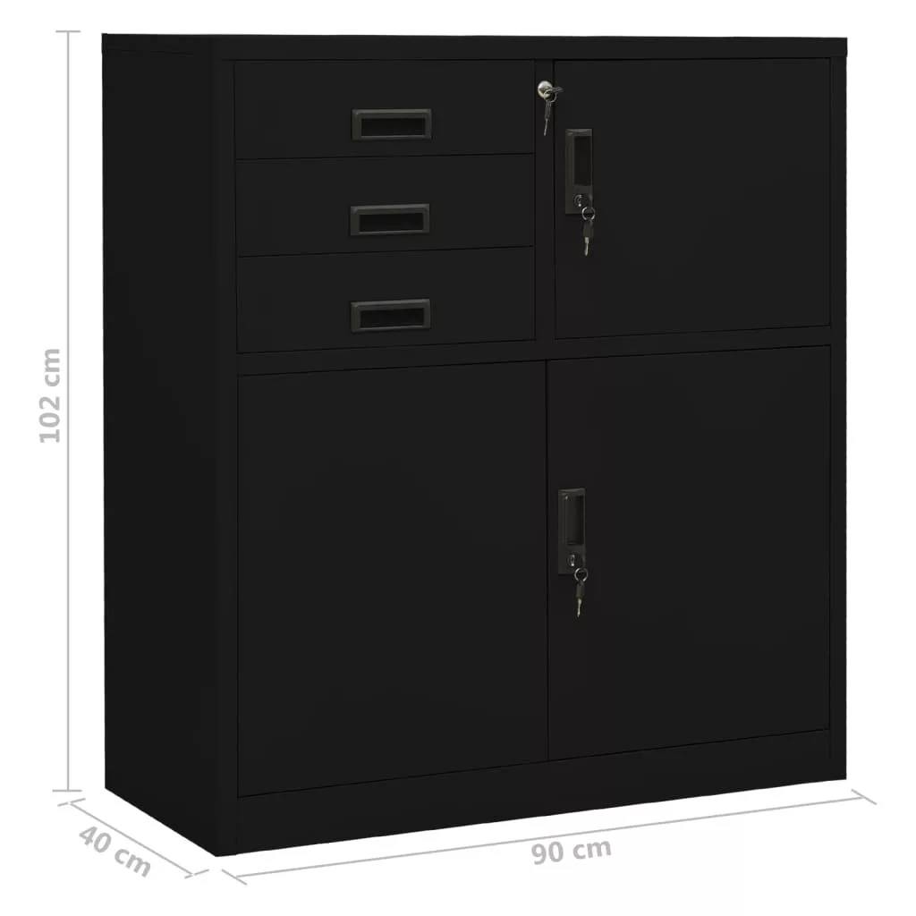fekete acél irodai szekrény 90 x 40 x 102 cm