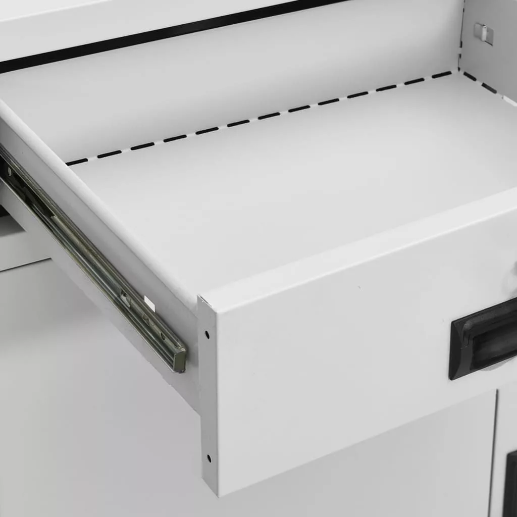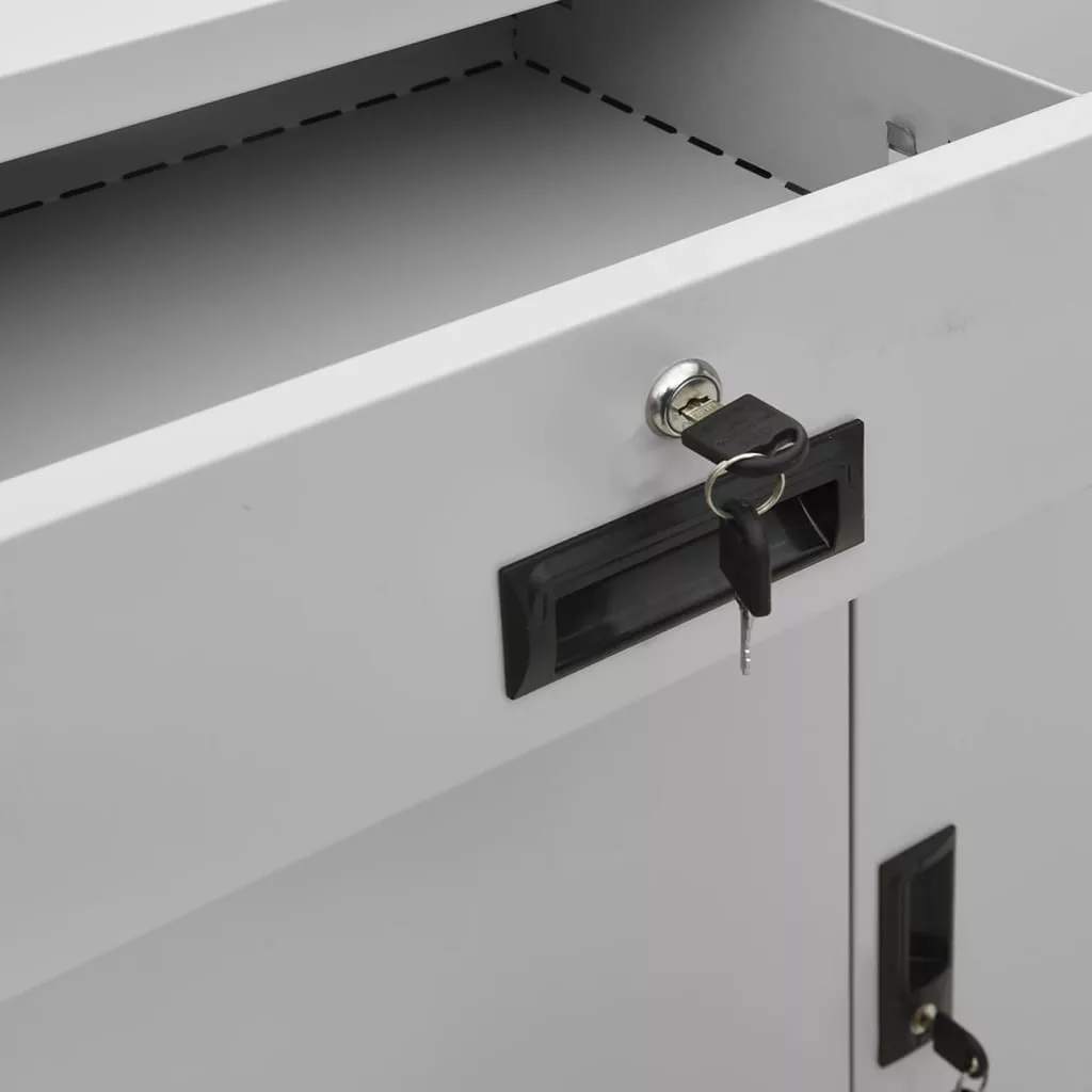 Ez a tipikus dizájnnal rendelkező irodai szekrény ideális mappák tárolásához. Ez az irodai szekrény acélból készült, ezért strapabíró és könnyen tisztítható. A 2 állítható polcnak köszönhetően különböző kategóriákba csoportosítva, rendszerezetten tárolhatja iratait. A 3 részes golyóscsapágyakkal ellátott fiókok könnyed nyitást és csukást biztosítanak, még nagyobb teher esetén is. Ikonikus dizájnjának hála bármely irodai berendezéshez illik.
