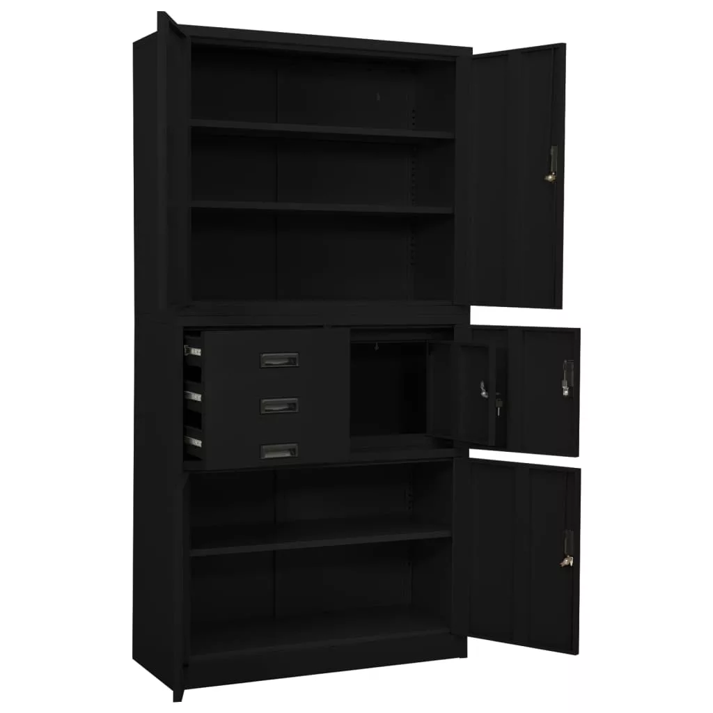 fekete acél irodai szekrény 90 x 40 x 180 cm