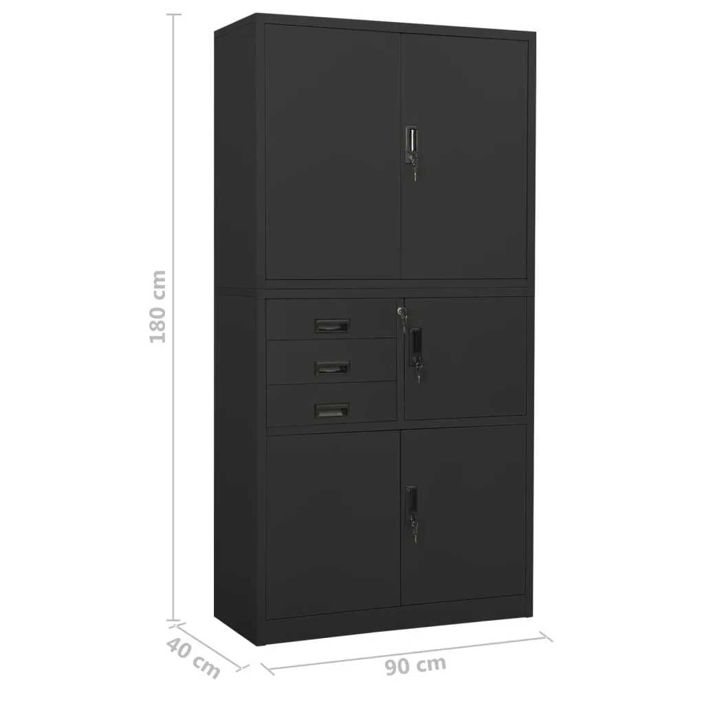 antracitszürke acél irodai szekrény 90 x 40 x 180 cm