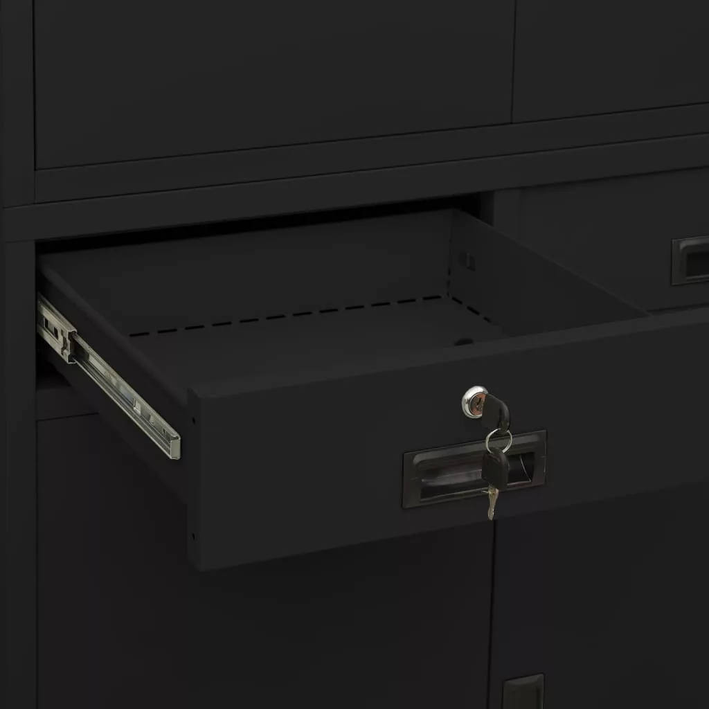 fekete acél irodai szekrény 90 x 40 x 180 cm