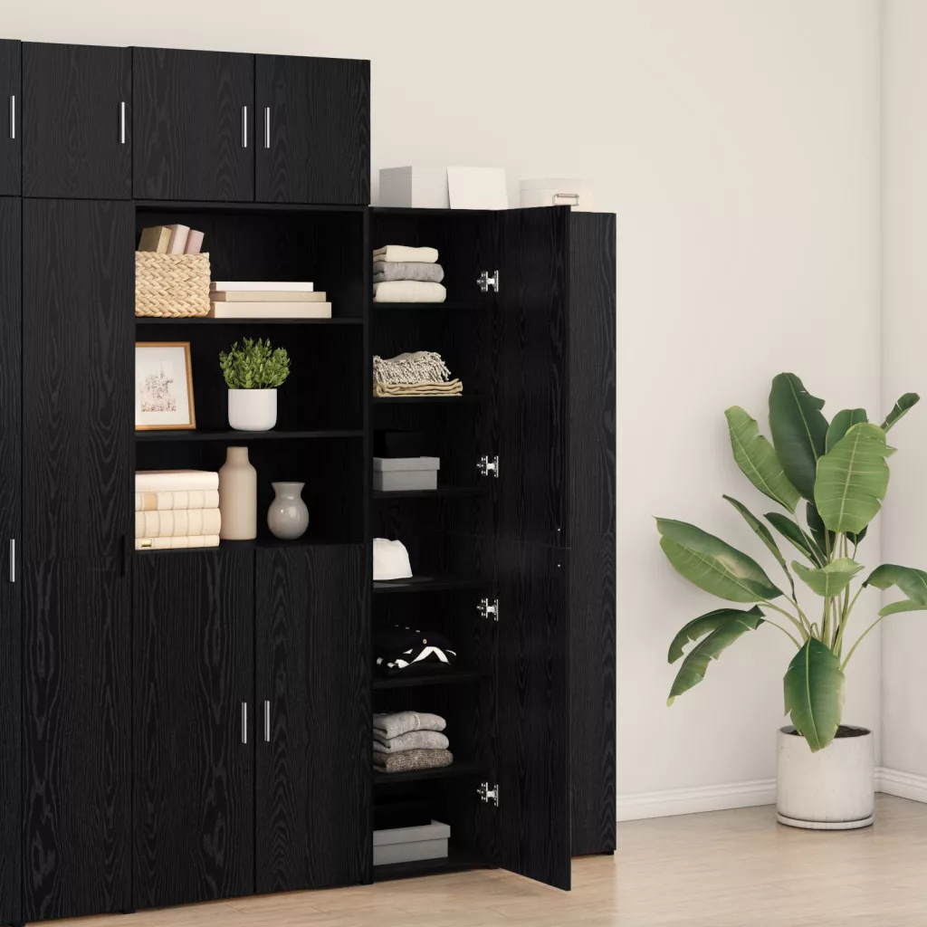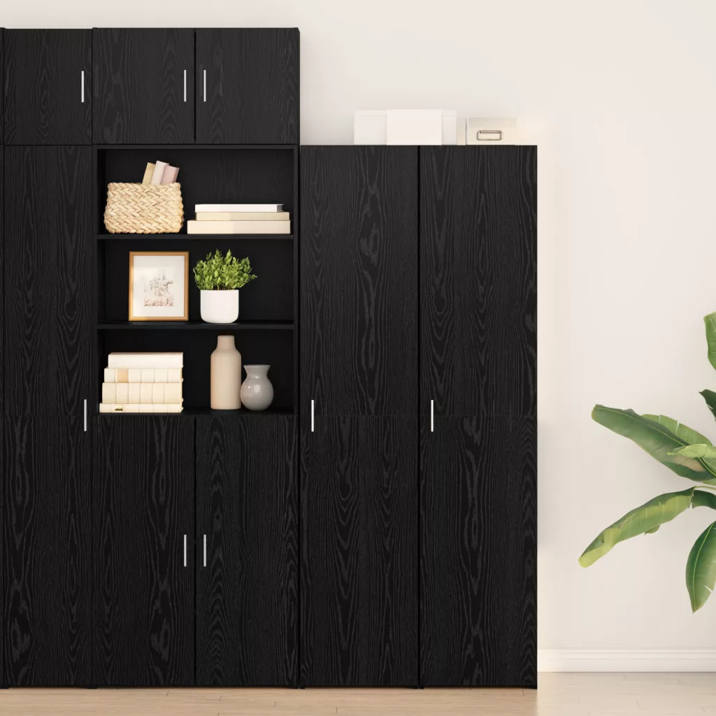 Nézd meg a vidaXL stílusos fekete tölgy magasszekrényét. Feldobja a lakásdekorációt, miközben okos tárolási megoldásokat kínál. Ez a csinos magasszekrény tömör tölgyből készült, így stabil. A matt felület modern hangulatot kölcsönöz, így megfelelő kiegészítője lehet bármely nappalinak vagy étkezőnek.