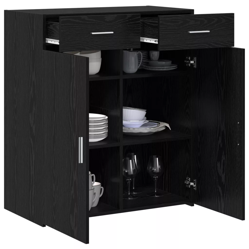 Üdvözöld a vidaXL tárolószekrényt, egy szuper fekete tölgyfurnérral — tökéletes a stílusos rendrakáshoz. Ez a szekrény tartós szerelt fával készült, 5 polccal és két fiókkal, polírozott fogantyúkkal a kényelem érdekében.