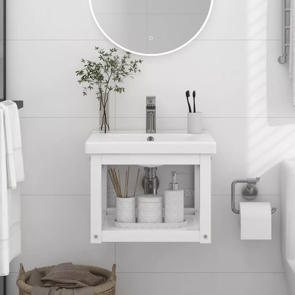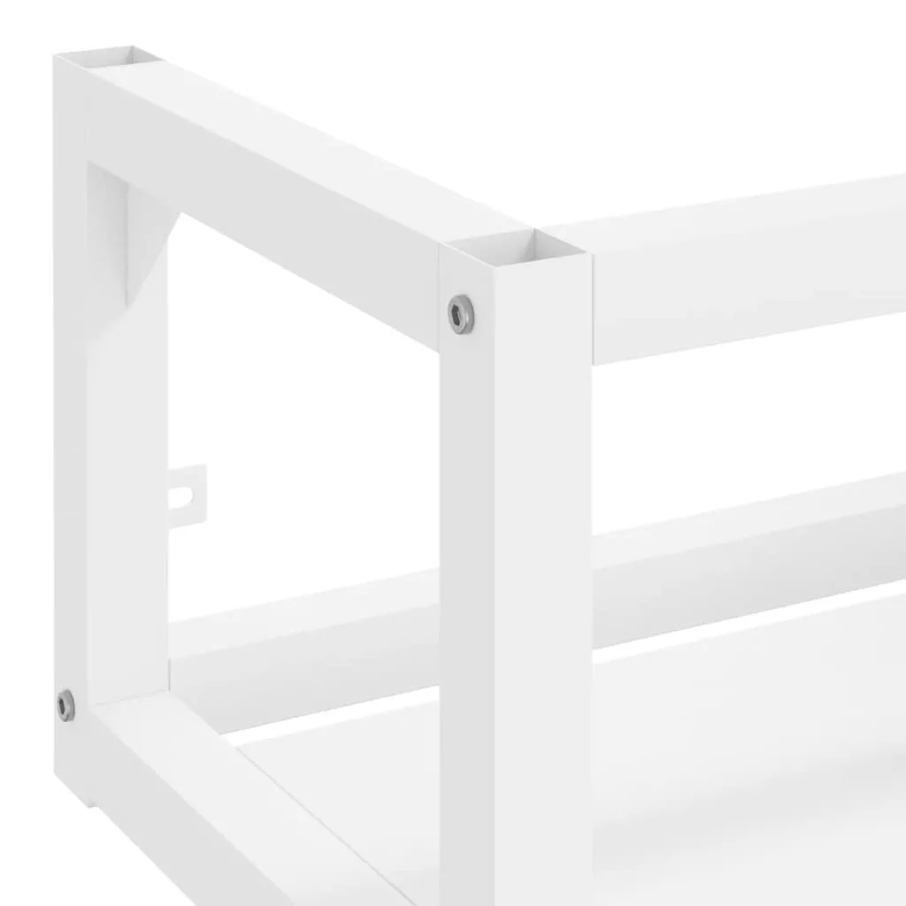 Ezzel a fürdőszobai fali mosdókagylókerettel további tárolóhelyet csinálhat fürdőszobájában tiszta, rendezett megjelenés mellett. A porszórt vasból készült mosdóállvány időjárásálló és tartós. A mosdókagylókeret könnyű hozzáférést biztosít a törölközőkhöz és a kosarakhoz és bőségesebb helyet teremt, mint a zárt tároló. A fürdőszobabútor nedves ruhával könnyen tisztítható.