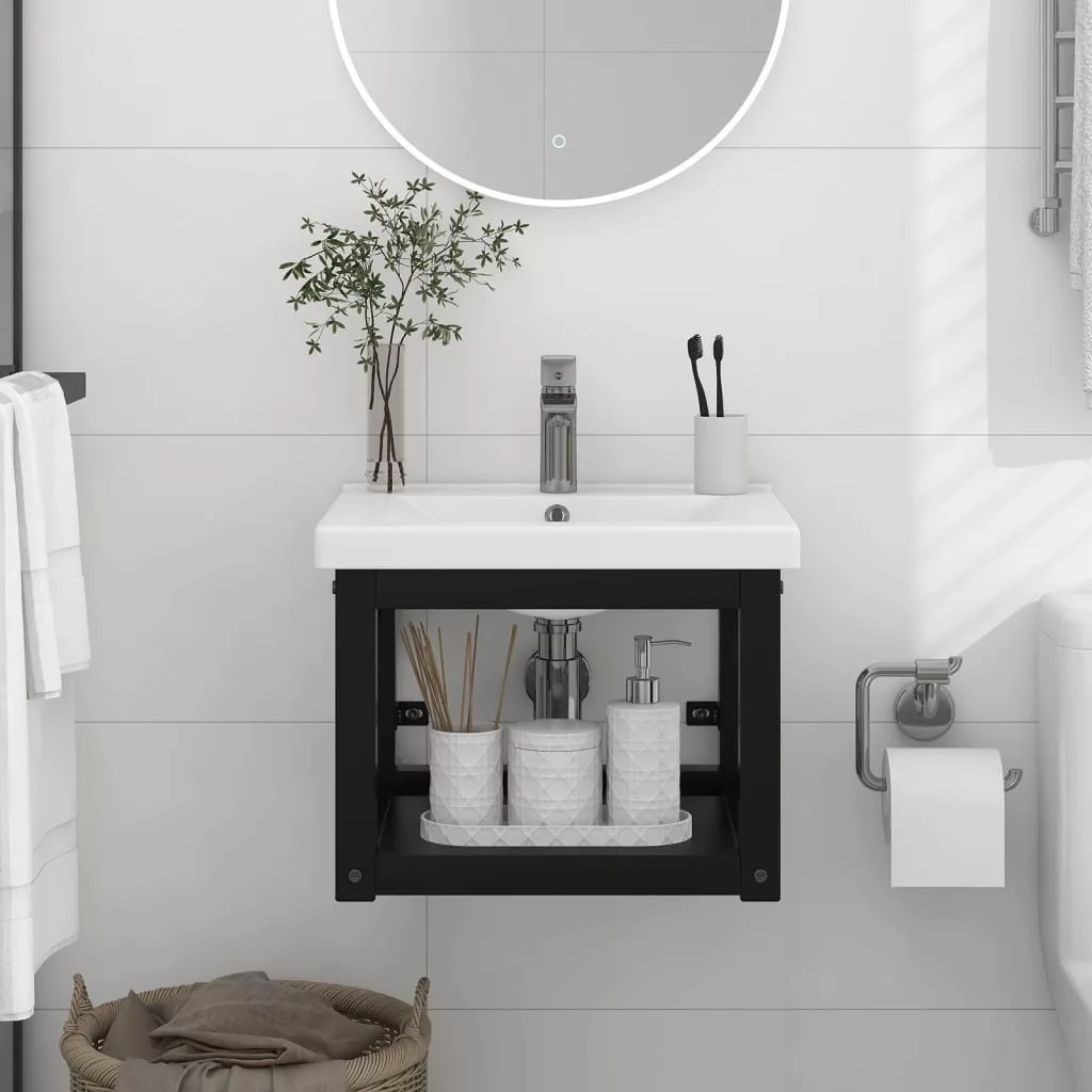 fekete vas fürdőszobai fali mosdókagylókeret 40 x 38 x 31 cm
