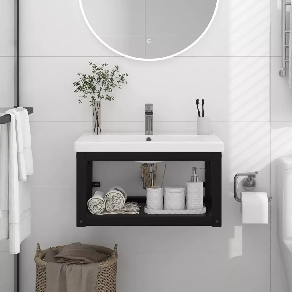 fekete vas fürdőszobai fali mosdókagylókeret 59 x 38 x 31 cm