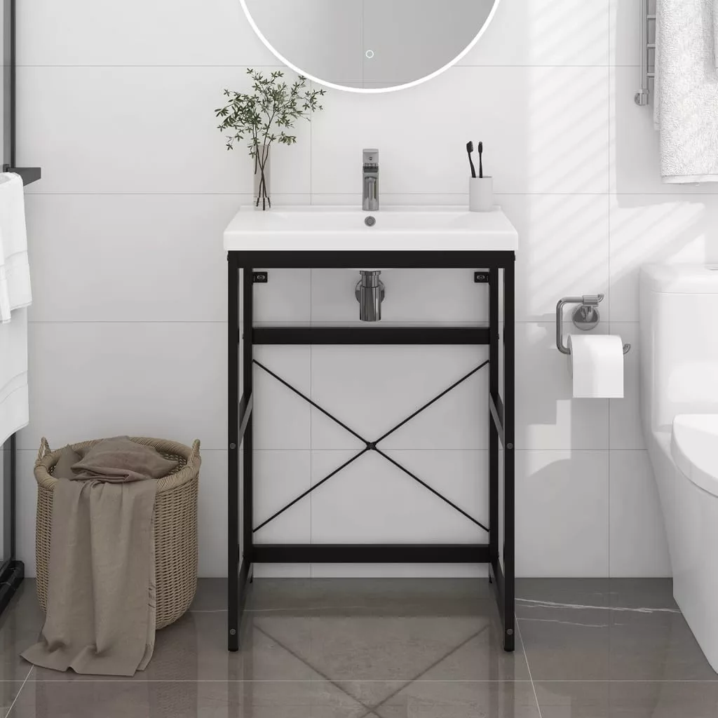 fekete vas fürdőszobai mosdókagylókeret 59 x 38 x 83 cm