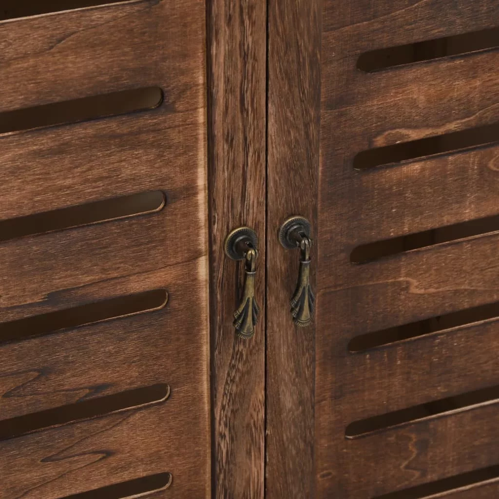 Ez a praktikus kialakítású fa díszszekrény garantáltan otthona fénypontja lesz. A szekrény tömör császárfából készült, így masszív, tartós és hosszú élettartamú. A tálalószekrény 2 ajtóval és 3 felső polccal lett felszerelve, amelyek bőséges helyet kínálnak különféle dolgok elhelyezésére és tárolására. Emellett a szekrény könnyen tisztítható és kezelhető.