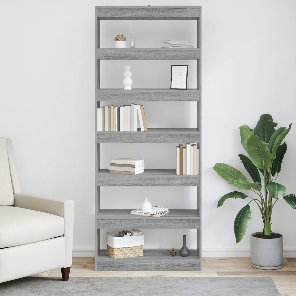 Könyvszekrény polcokkal Egyéb tárolóval Szürke sonoma 80 x 30 x 198 cm Faanyag
