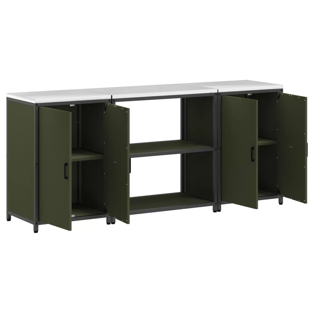 Konyhai Tároló Készlet 3 pcs Olajzöld 210 x 50 x 92 cm