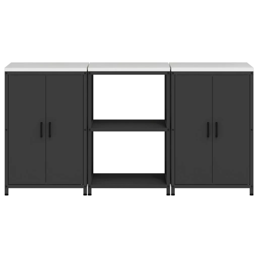 Konyhai Tároló Készlet polcokkal tárolóval ajtóval 3 pcs Fekete 180 x 50 x 92 cm
