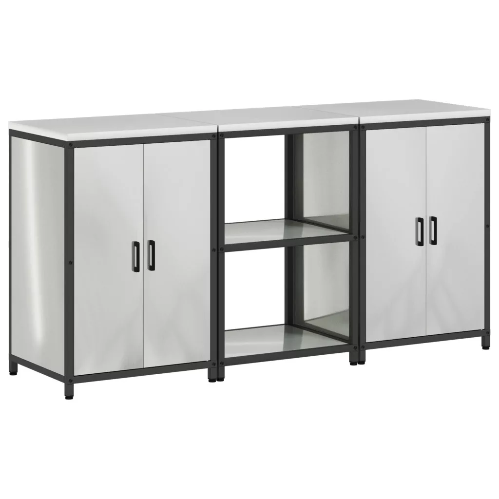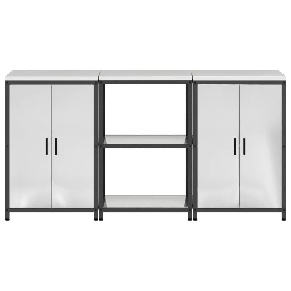 Konyhai Tároló Készlet polcokkal tárolóval ajtóval 3 pcs Ezüst 180 x 50 x 92 cm