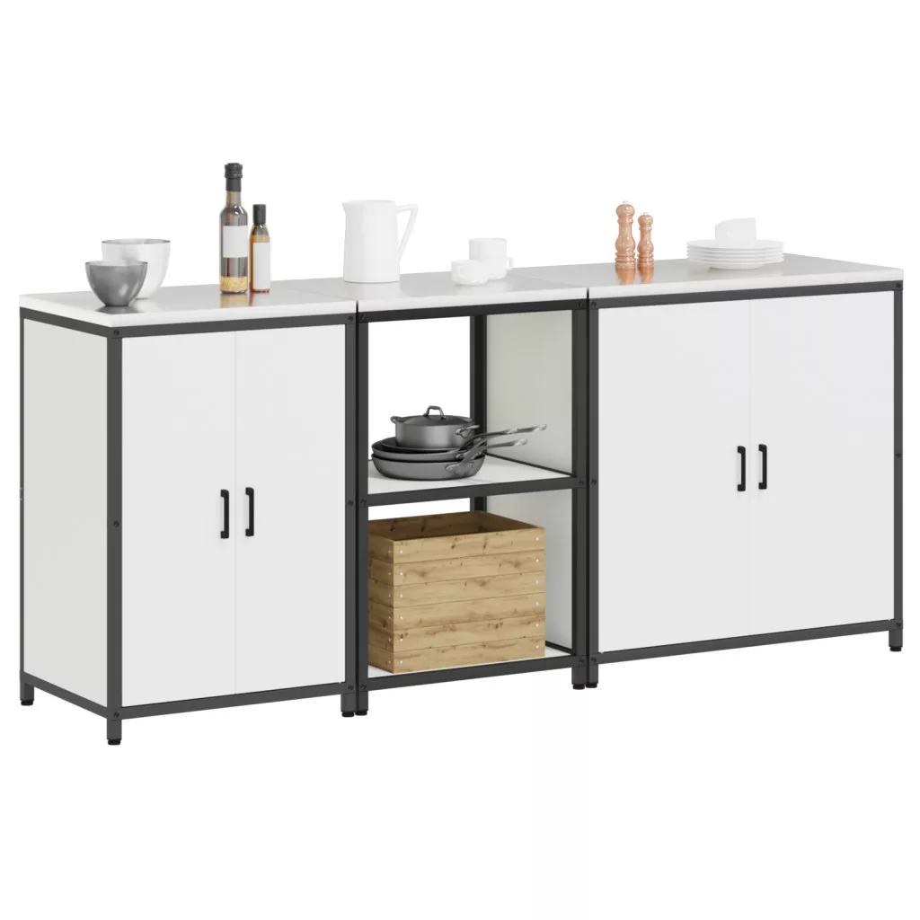 Konyhai tároló szett polcokkal Egyéb tárolóval ajtóval 3 pcs Fehér 210 x 50 x 92 cm