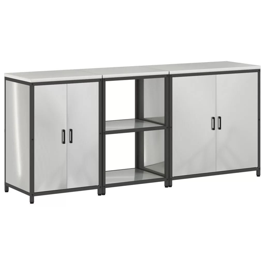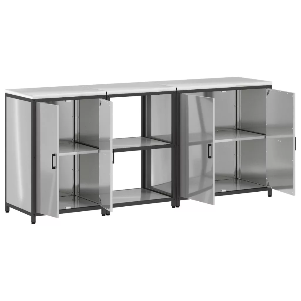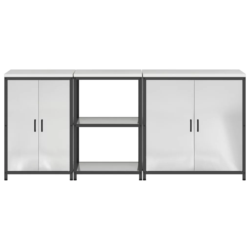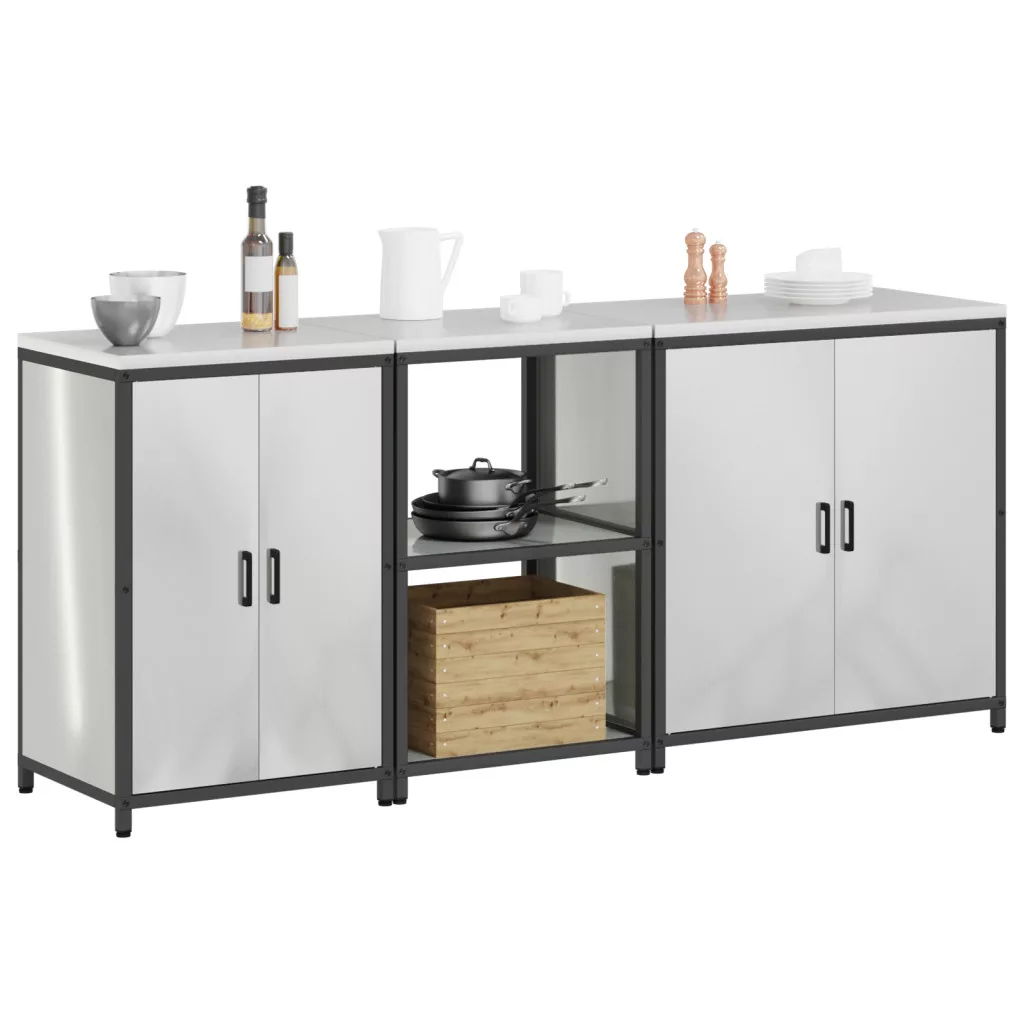 Konyhai tároló szett polcokkal Egyéb tárolóval ajtóval 3 pcs Ezüst 210 x 50 x 92 cm