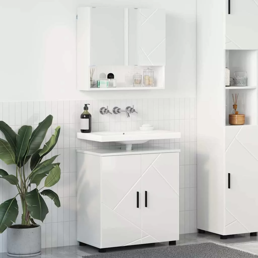 Fürdőszoba bútor szett 2 pcs Magasfényű fehér 61 x 35 x 64 cm