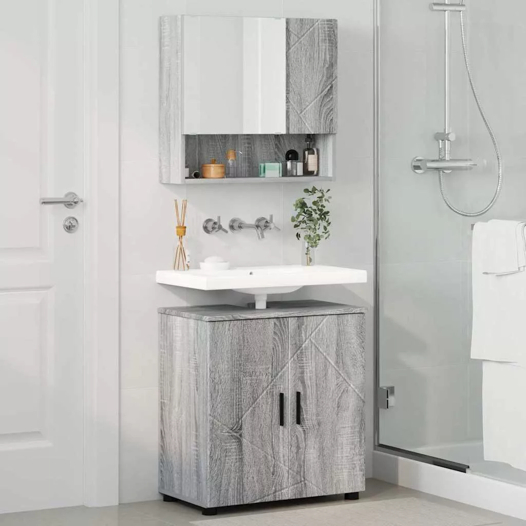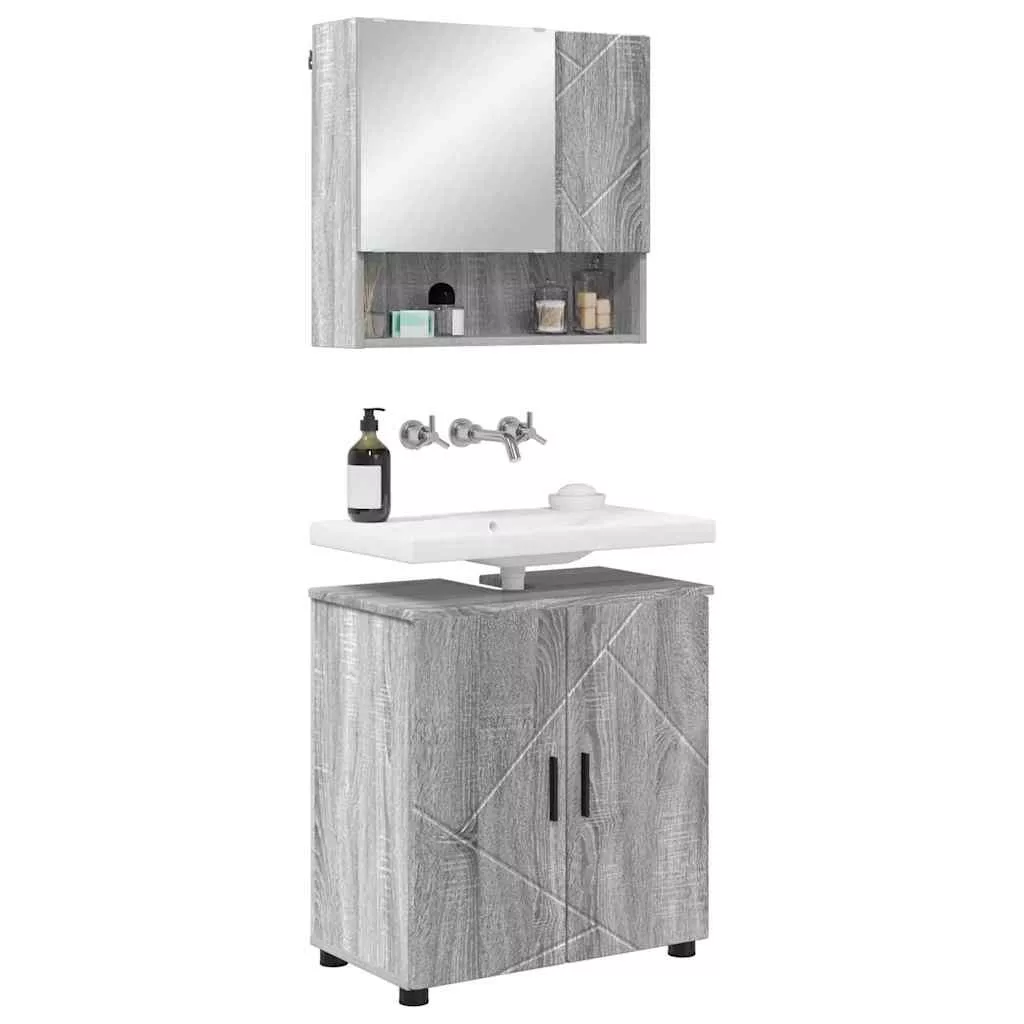 Fürdőszoba bútor szett 2 pcs Szürke sonoma 61 x 35 x 64 cm