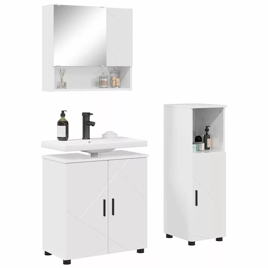 Fürdőszoba bútor szett 3 pcs Magasfényű fehér 61 x 35 x 64 cm