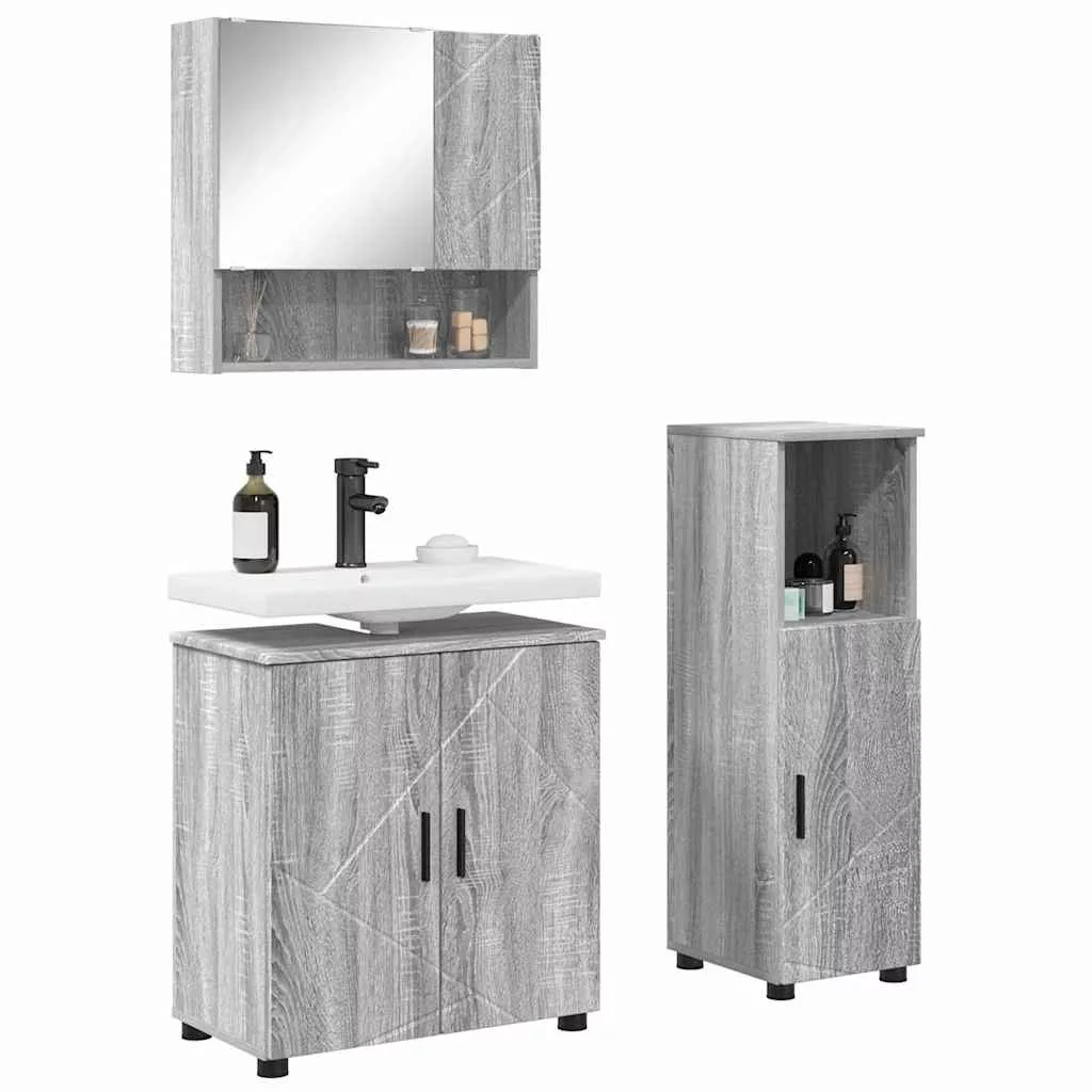Fürdőszoba bútor szett 3 pcs Szürke sonoma 61 x 35 x 64 cm