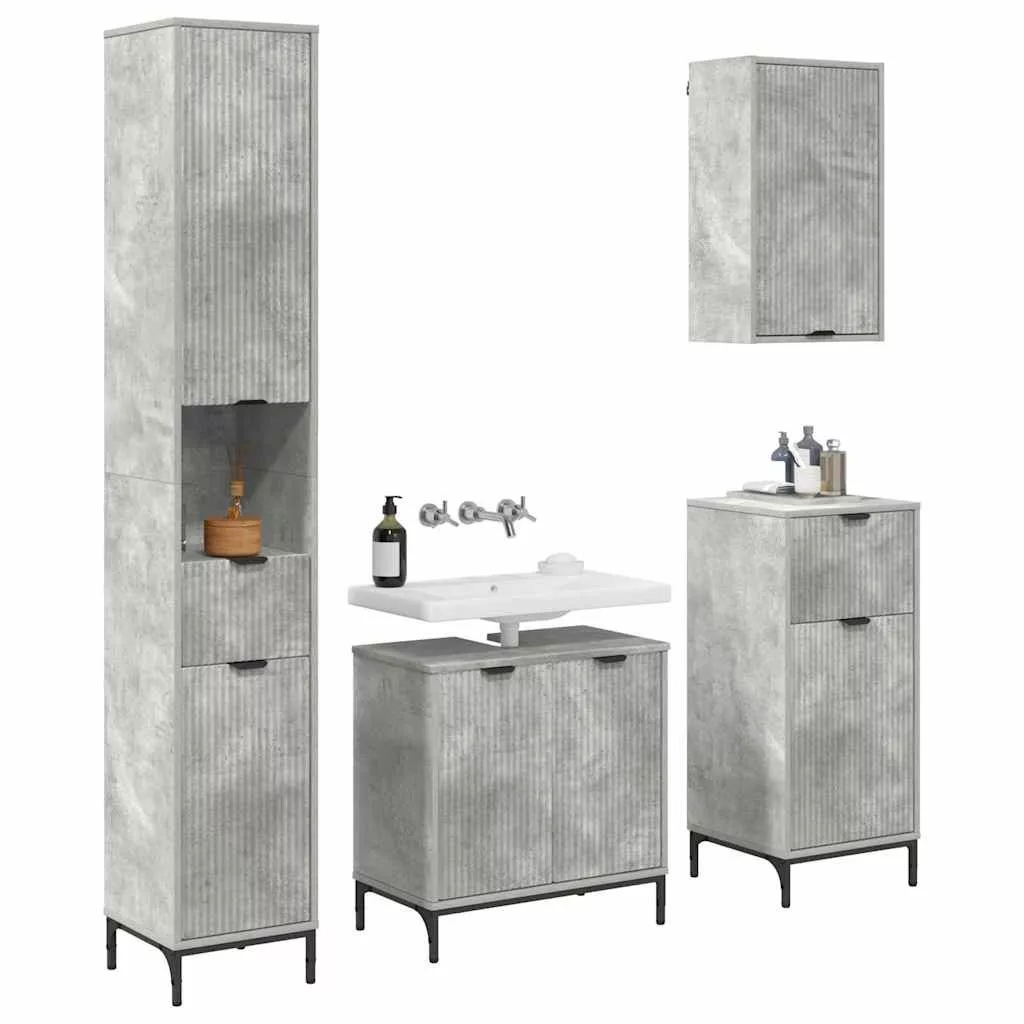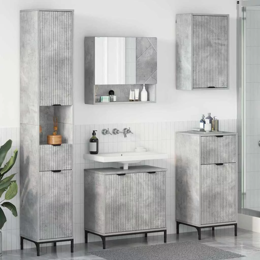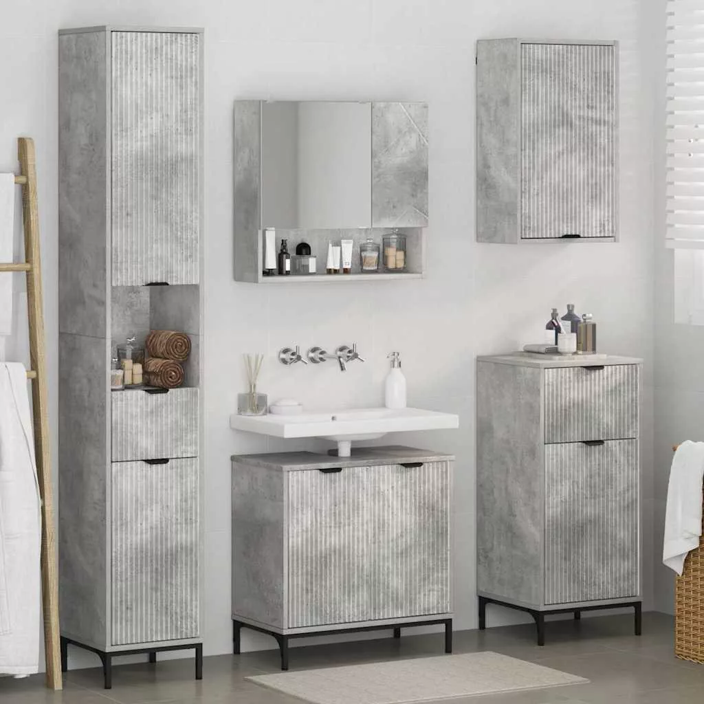 Fürdőszoba bútor szett fiókkal Beton Szürke Műanyag fa, fém
