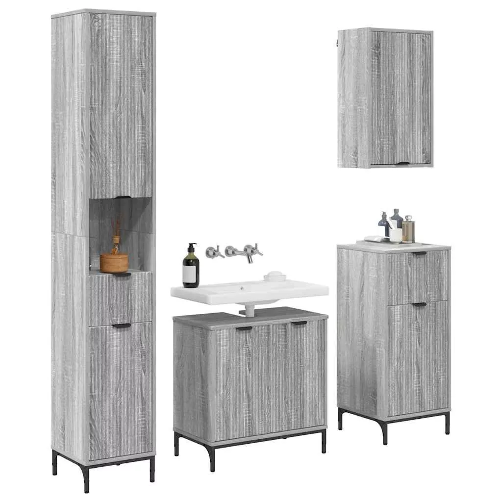 Fürdőszoba bútor szett fiókkal Szürke Sonoma Műanyag fa, fém