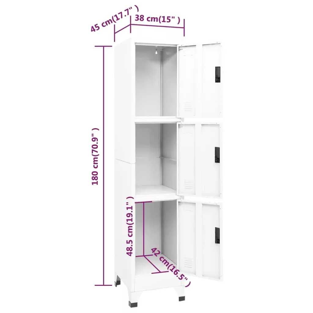 Ez a modern stílusú zárható szekrény bármilyen szoba vagy iroda nagyszerű dekoratív kiegészítője lesz. Ez a tárolószekrény acélból készült, így tartós és könnyen tisztítható. Minden rekesz zárható ajtóval és szellőzőnyílásokkal van ellátva. A szekrény bőséges tárolóhelyet nyújt ruhák és egyéb személyes holmik biztonságos tárolására. Emellett a névcímketartó lehetővé teszik kellékei rendezett tárolását. Ez a szekrény iskolákban és irodákban használható különféle tárgyak tárolására.